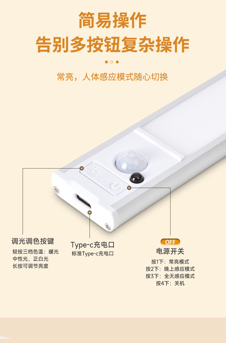 • 투광 조명 80cm [3 색 조절 + 인체 유도]]