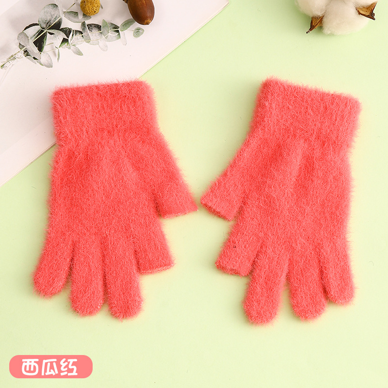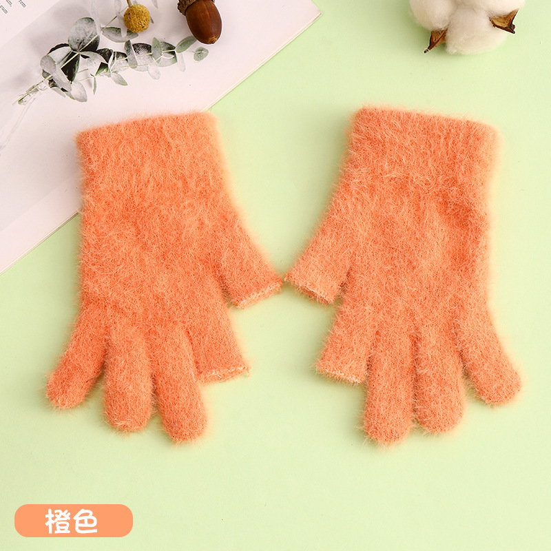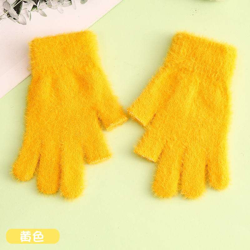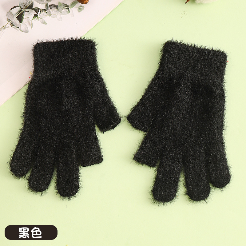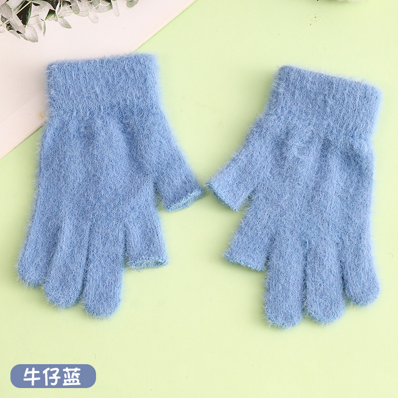 가을과 겨울 어린이 이슬 두 손가락 필기 장갑 초등학생 따뜻한 방한 패딩 플러시 반 손가락 장갑스토어 가기