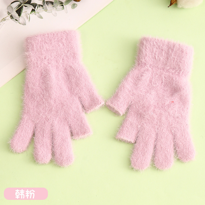 가을과 겨울 어린이 이슬 두 손가락 필기 장갑 초등학생 따뜻한 방한 패딩 플러시 반 손가락 장갑