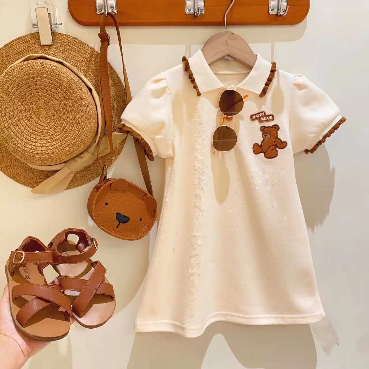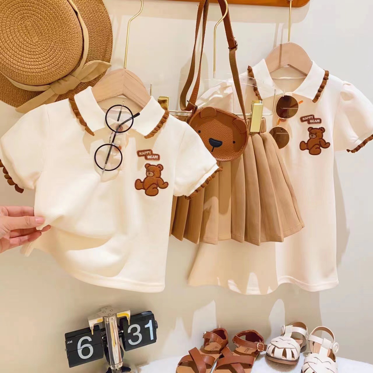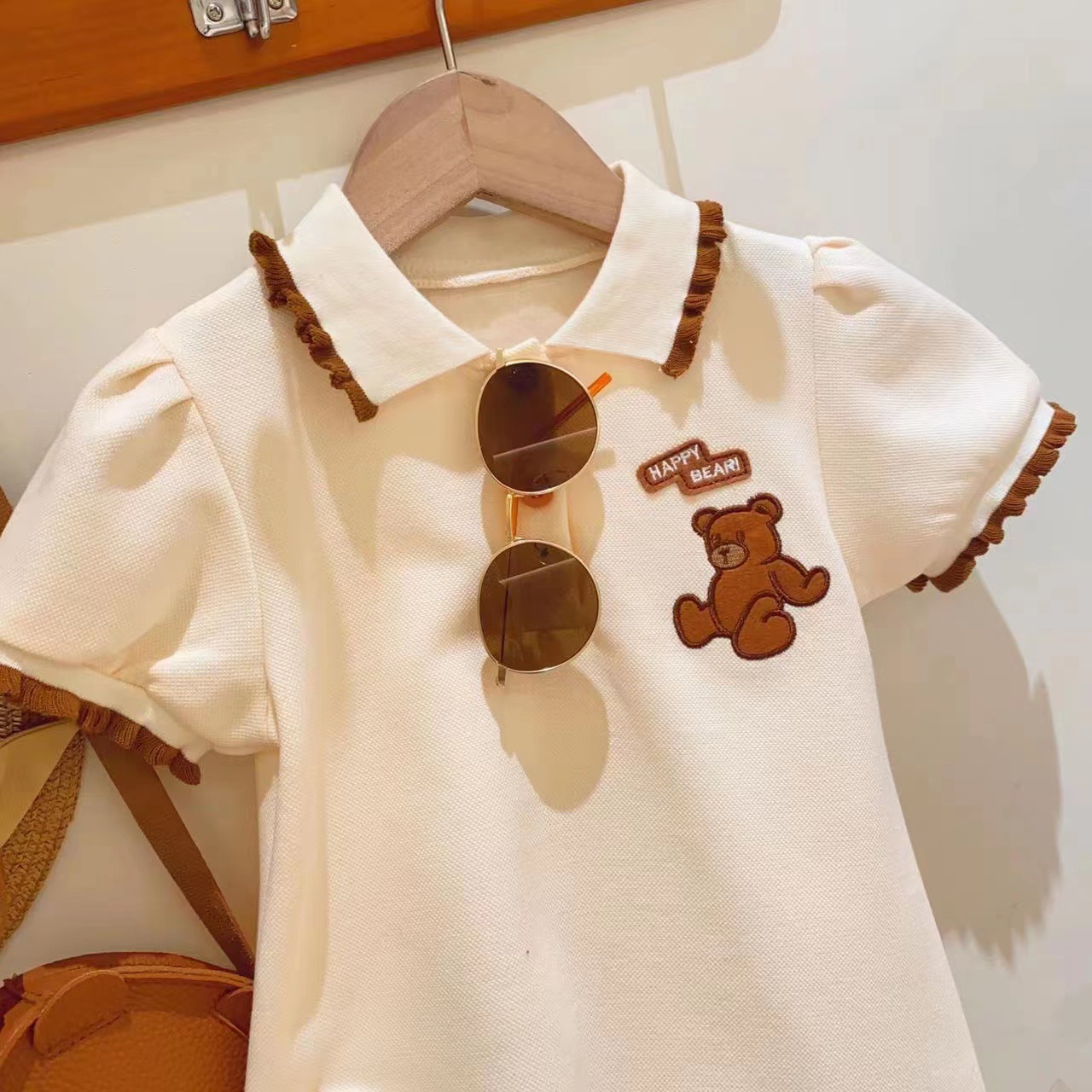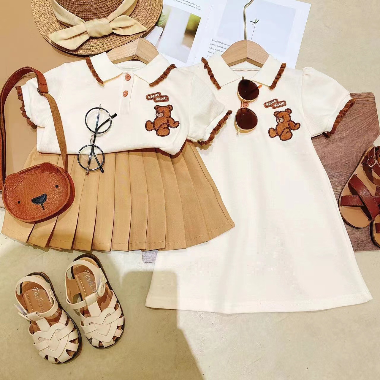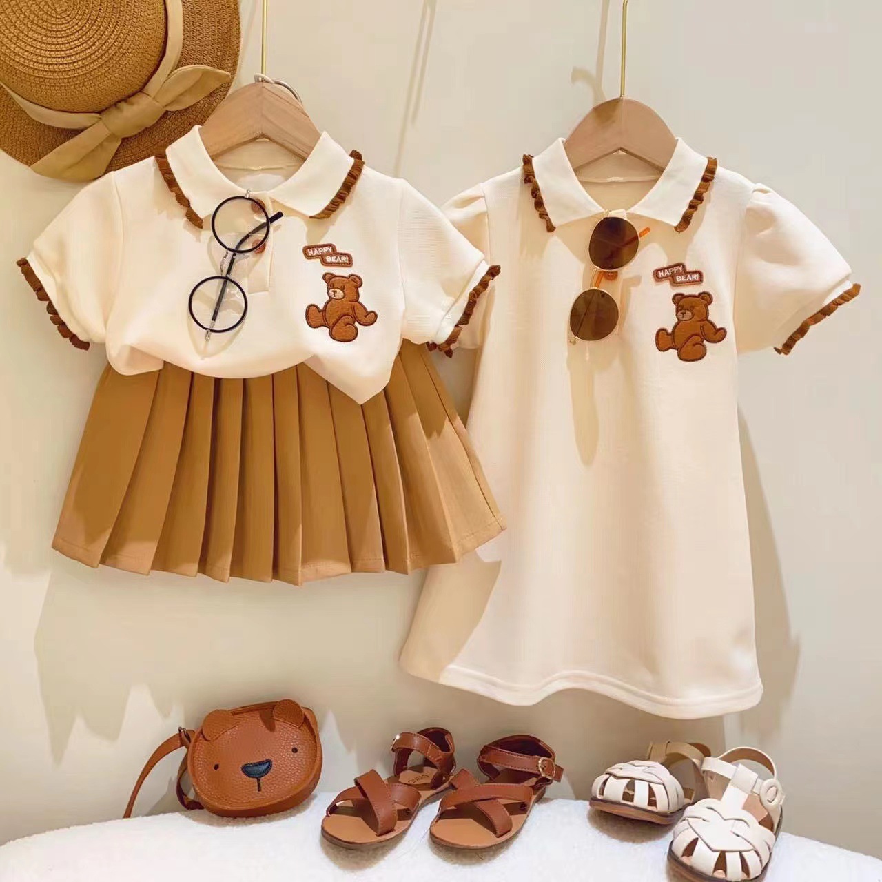 소녀의 세트 원피스 2023 여름 만화 라벨 폴로 칼라 더블 버전 공주 투피스 95079스토어 가기