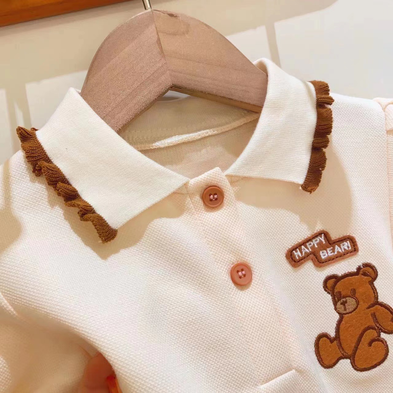 소녀의 세트 원피스 2023 여름 만화 라벨 폴로 칼라 더블 버전 공주 투피스 95079