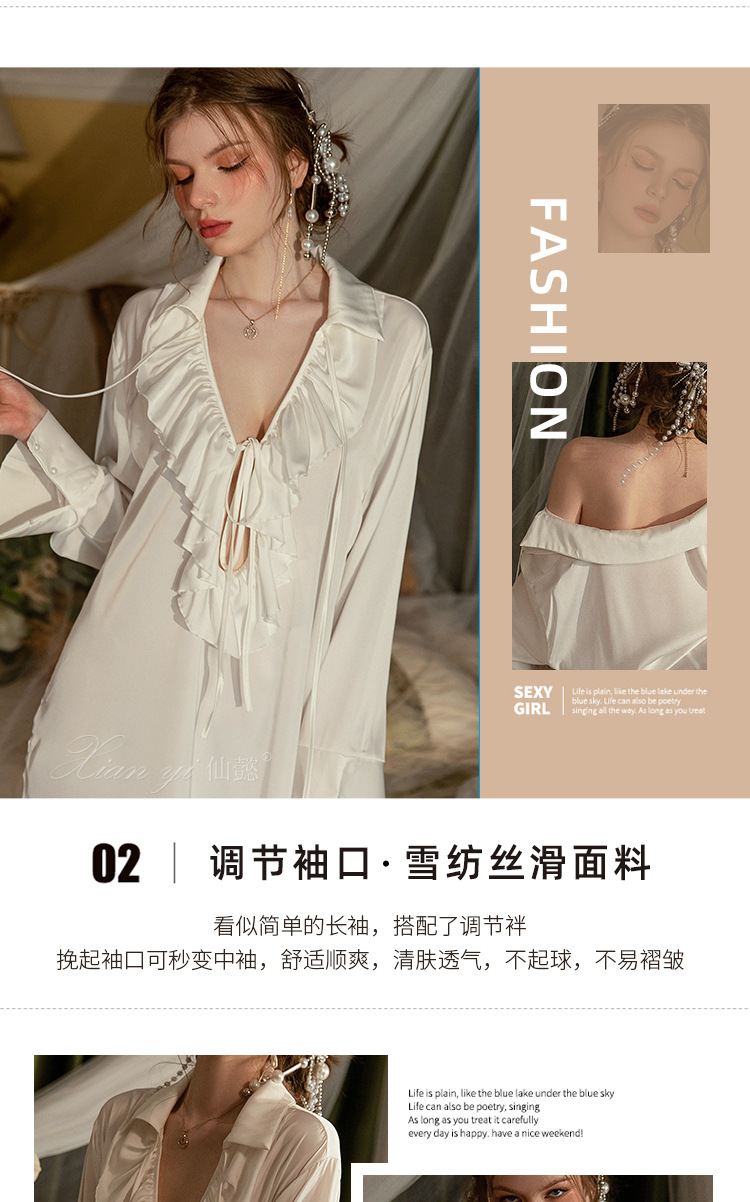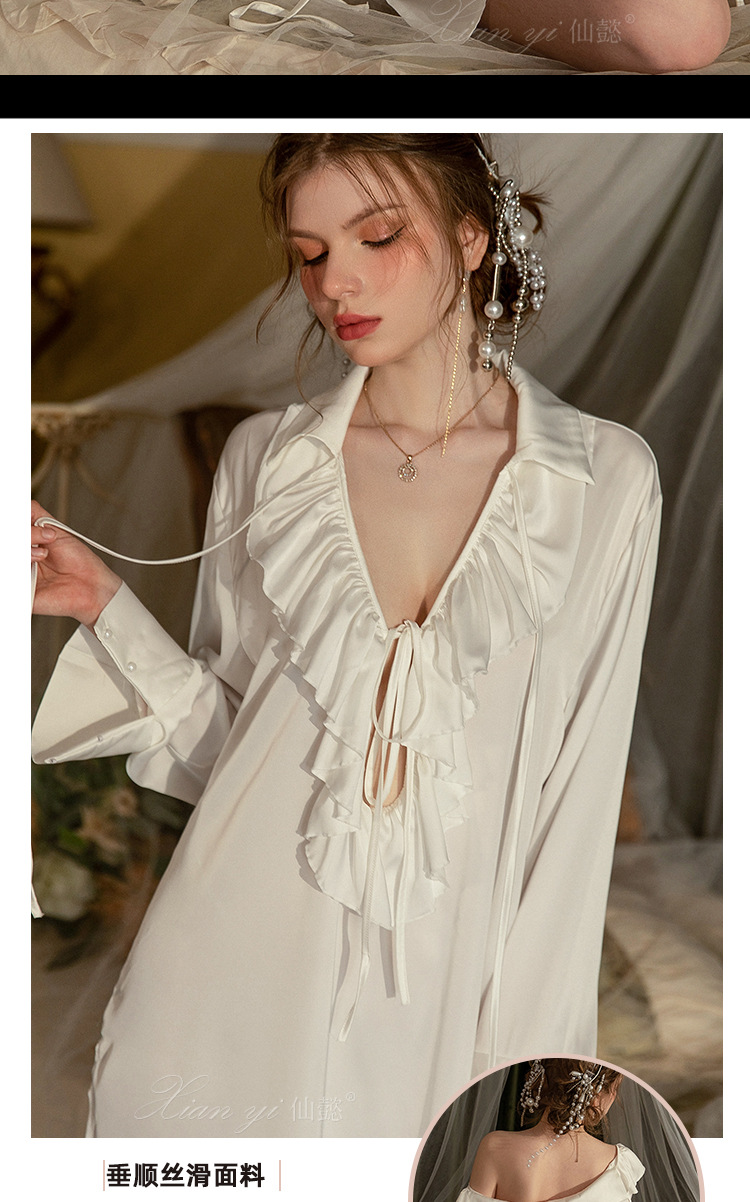 Xianyi 잠옷 여자의 가을 섹시한 얇은 긴팔 실크 아침 가운 고급 감각 가정 옷을 입을 수 플러스 사이즈 492