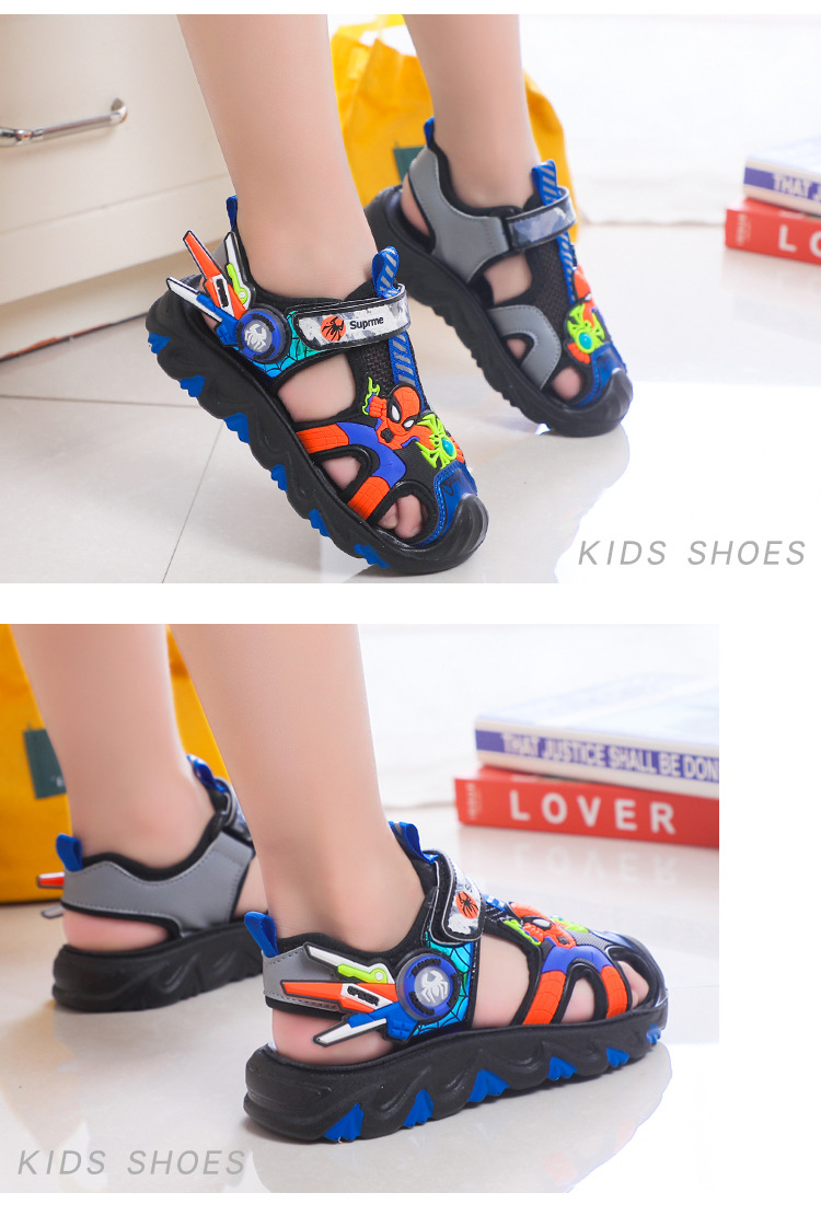 남학생 랩 발가락 샌들 2024 신식 중대형 어린이 아기 어린이 여름 구멍 신발 소프트 단독 미끄럼 방지 비치 샌들스토어 가기