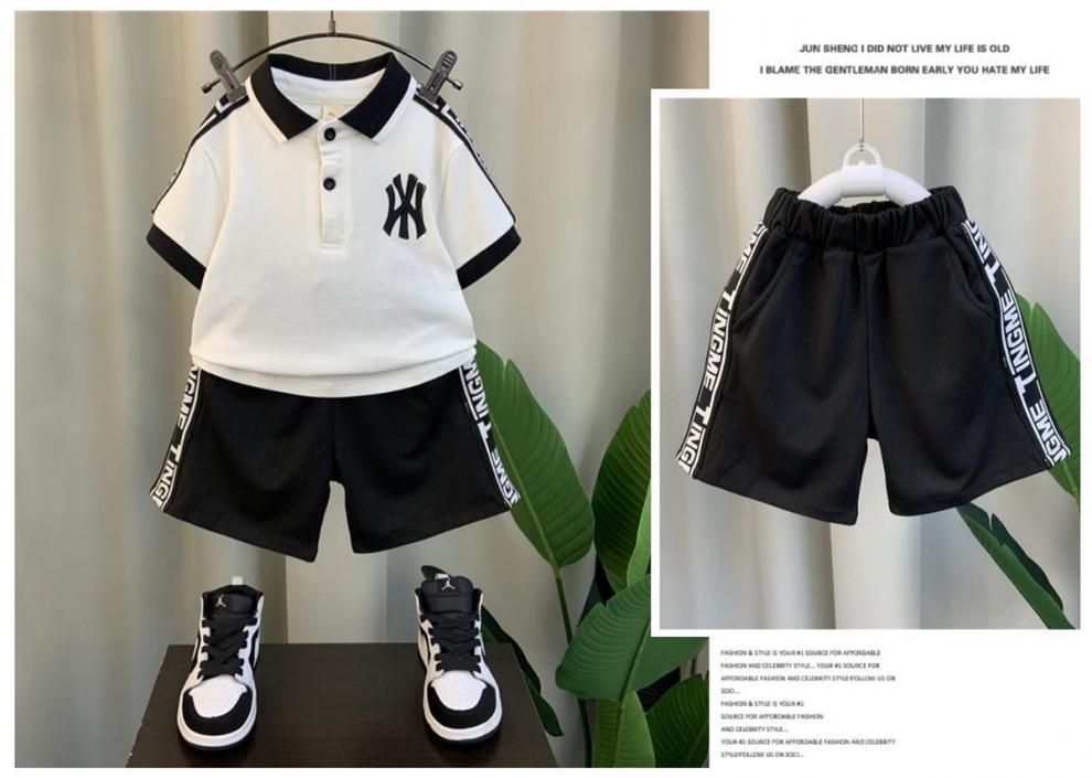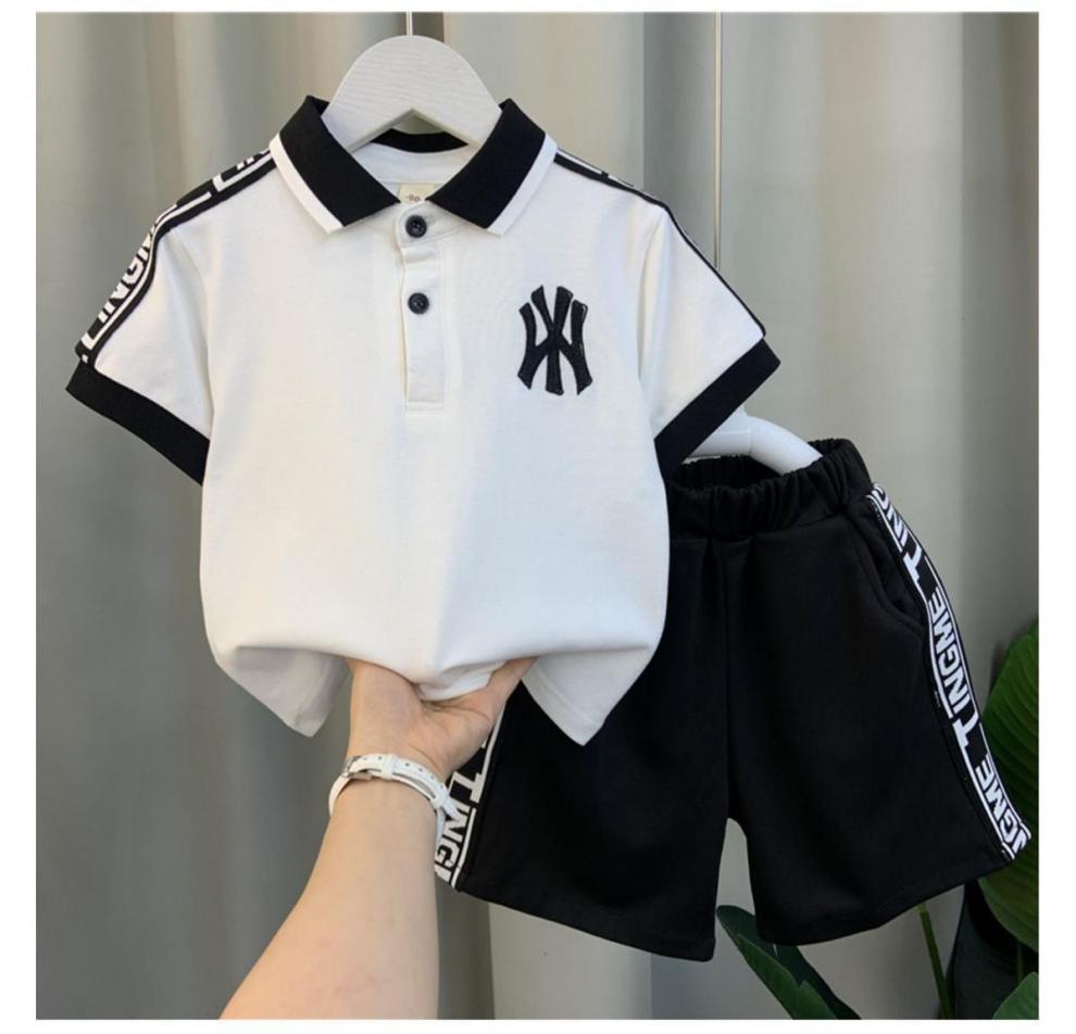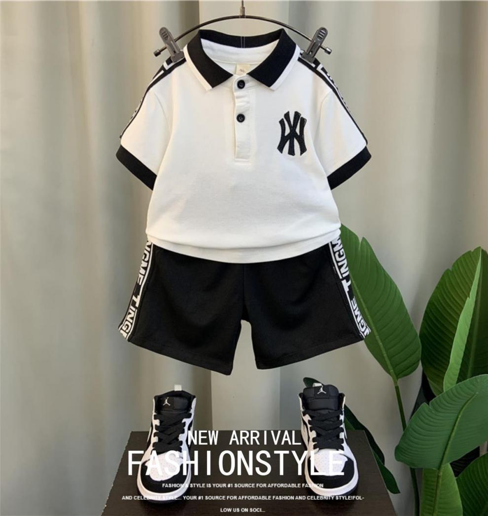 소년 여름 폴로 셔츠 세트 2023 새로운 아기 인터넷 연예인 반팔 옷 어린 소년 어린이 멋진 잘 생긴 아동복스토어 가기