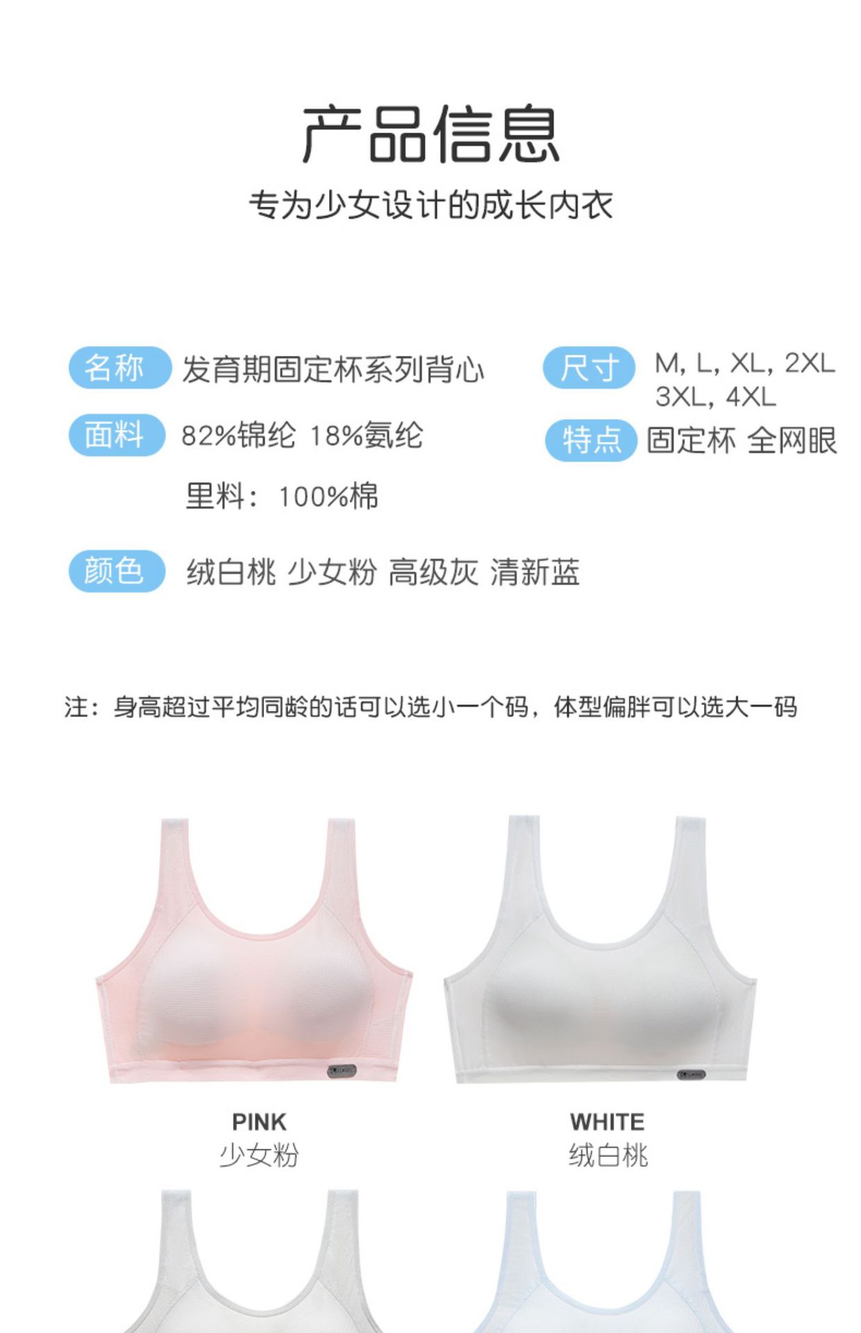 여아 브라 학생 스포츠 속옷 여아 충격 방지 조끼 개발 기간 15 세 중학교 고등학생 청소년기