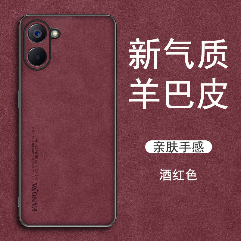 适用realme真我v30手机壳realem新款羊巴皮realmev30全包防摔适用