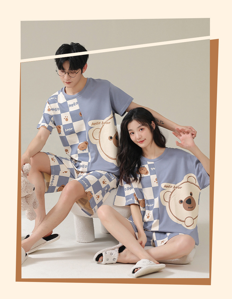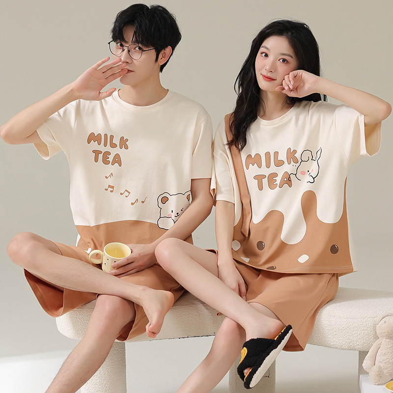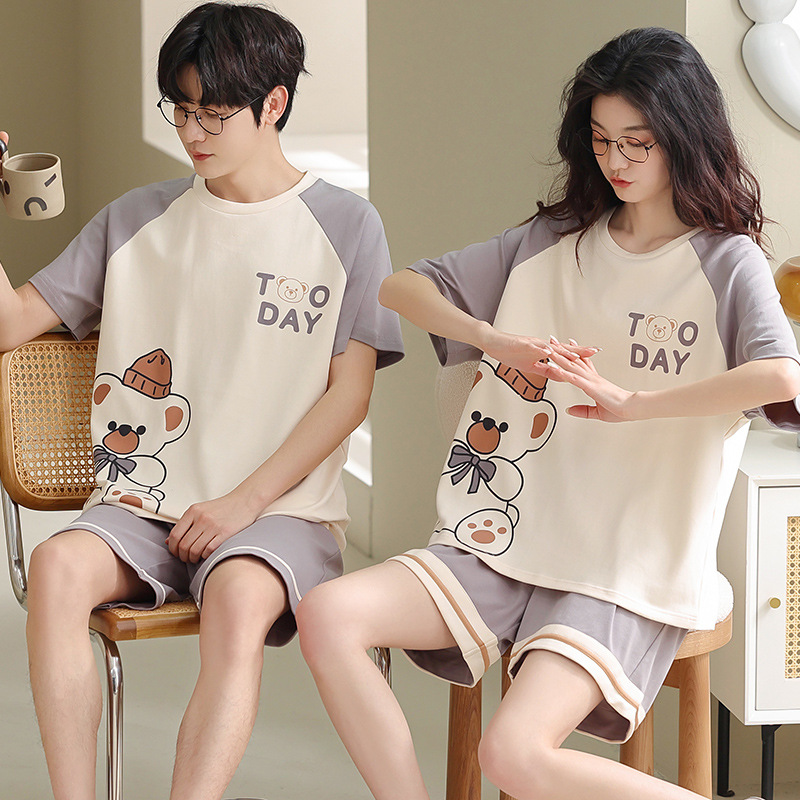 순면 반바지 만화 새 커플 잠옷 여성의 여름 캐주얼 남성 라운드 넥 풀오버 겉옷 홈 세트스토어 가기