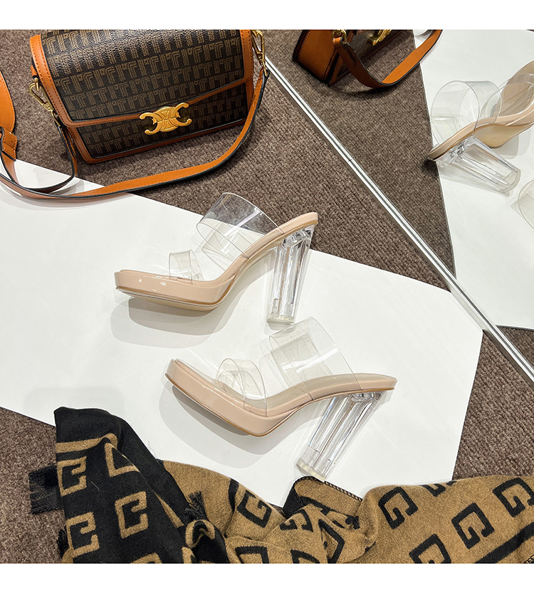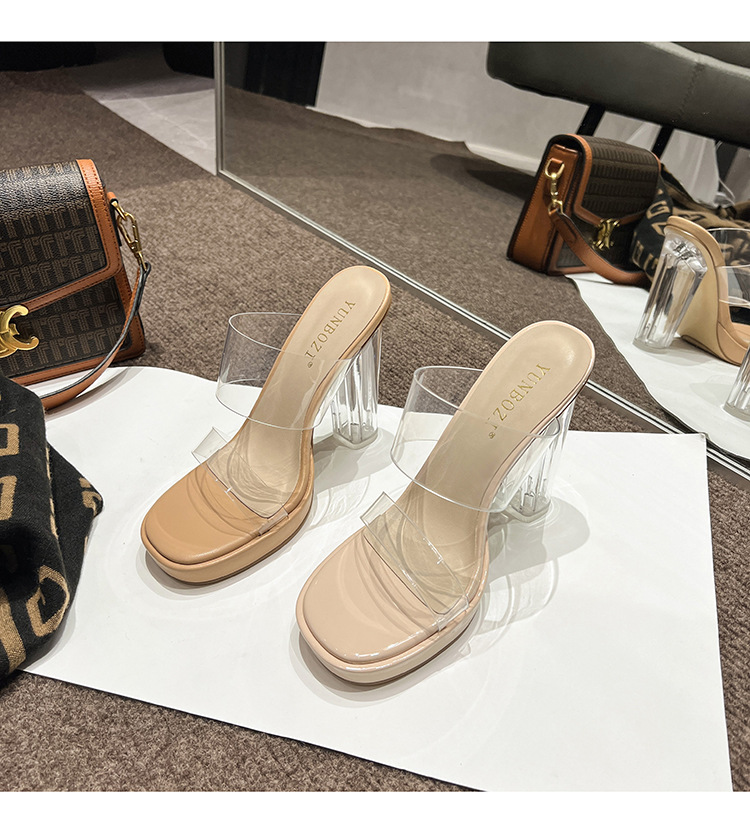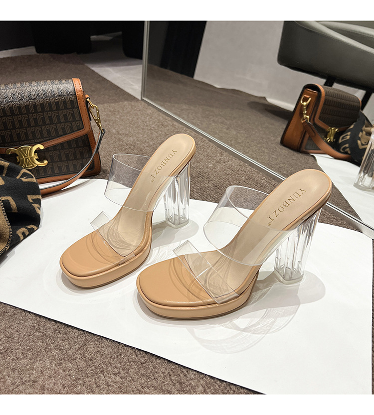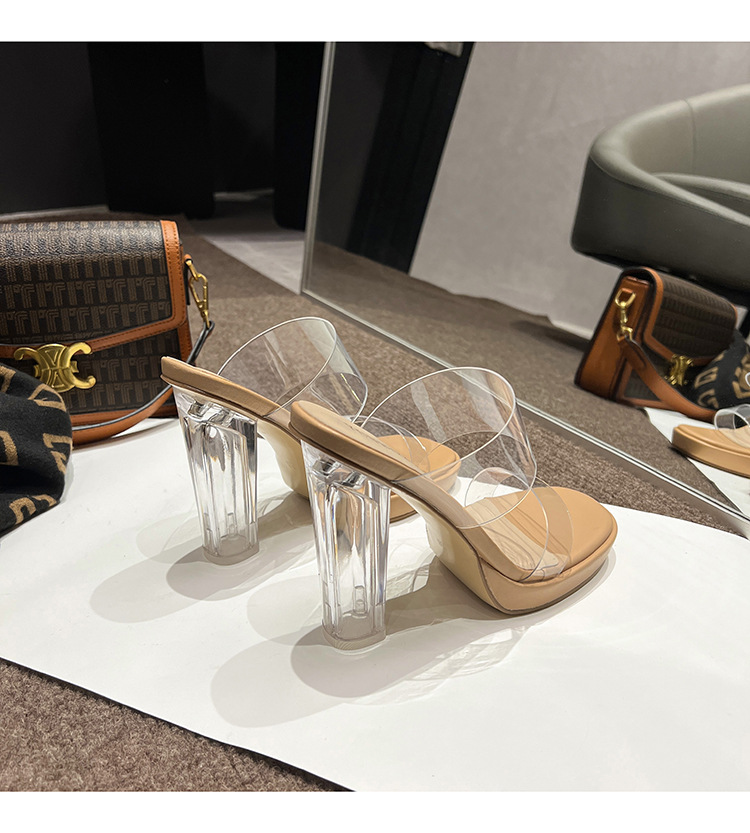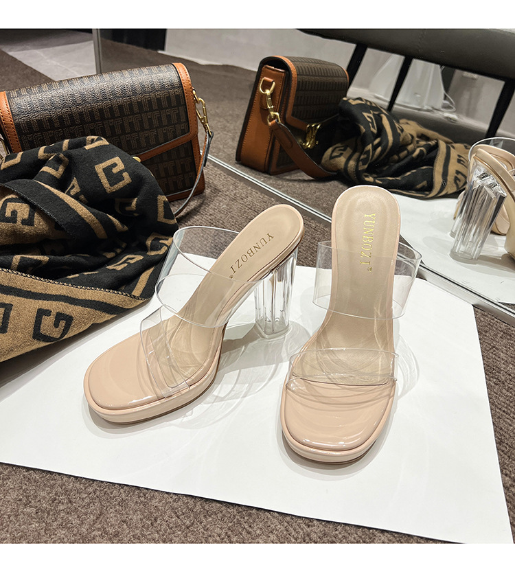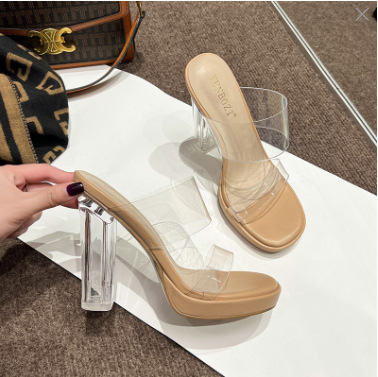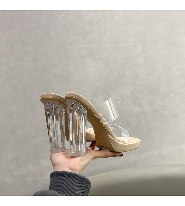 투명 하이힐 여성용 여름 새로운 방수 플랫폼 슬리퍼 슈퍼 하이힐 크리스탈 힐 두꺼운 굽 여성용 샌들