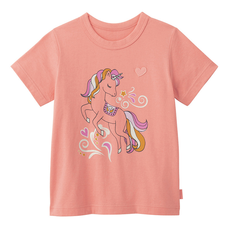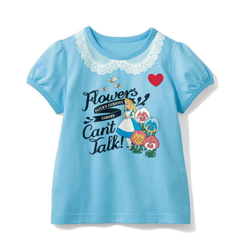 여름 소녀 면 티셔츠 여성용 보물 반팔 셔츠 얇은 반소매 탑 만화 80-140 사이즈 일본 아동복스토어 가기