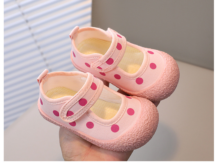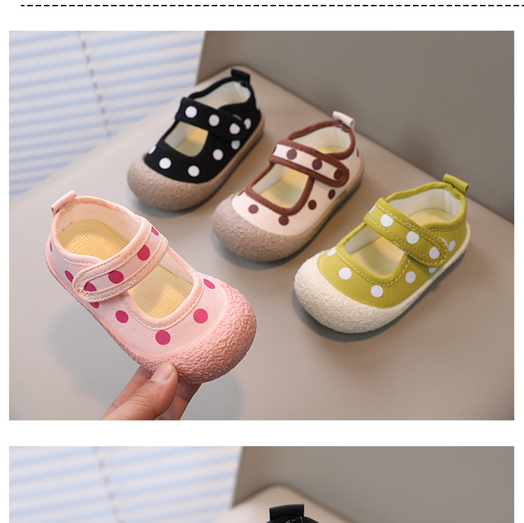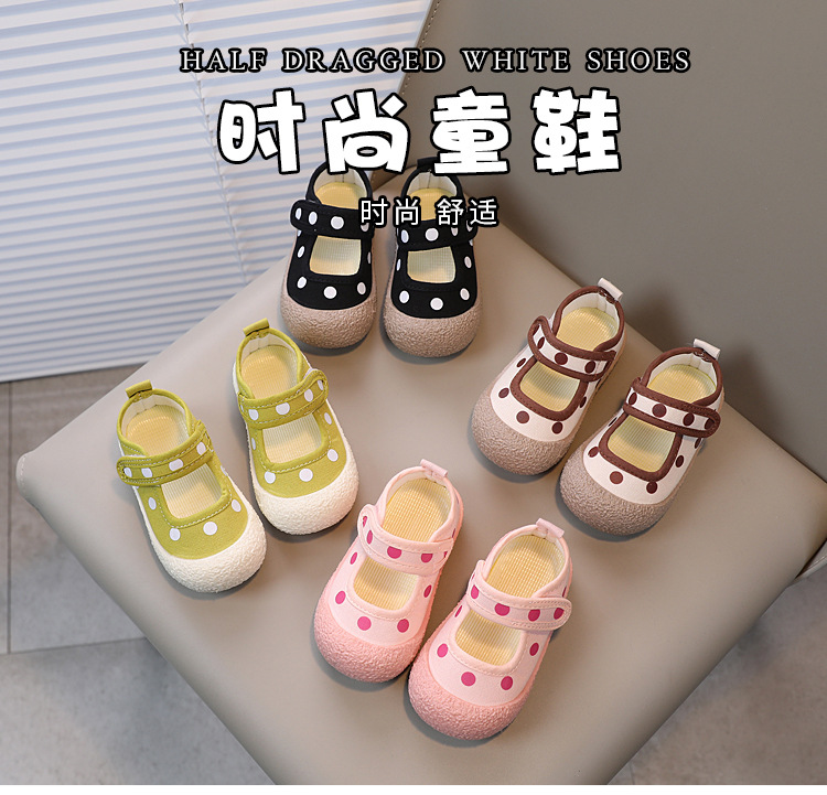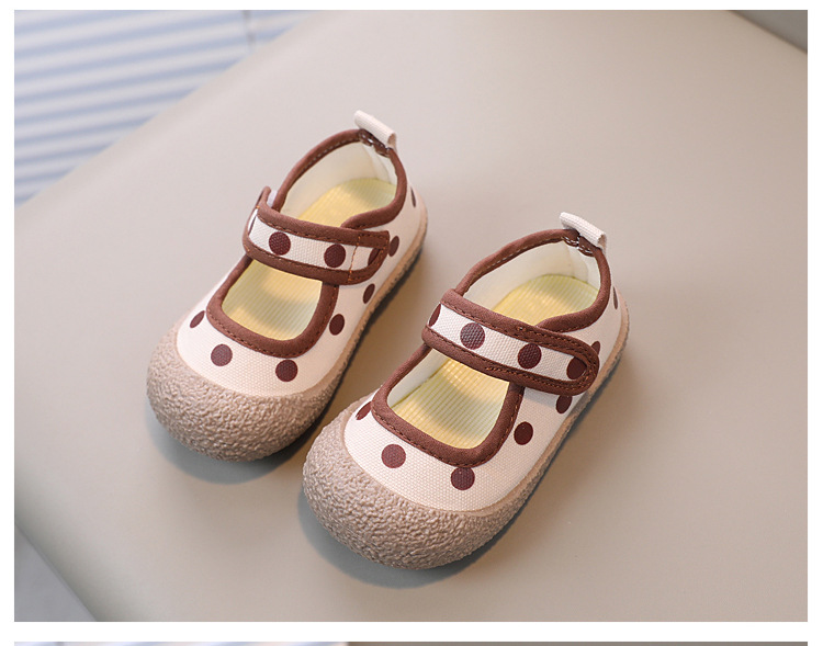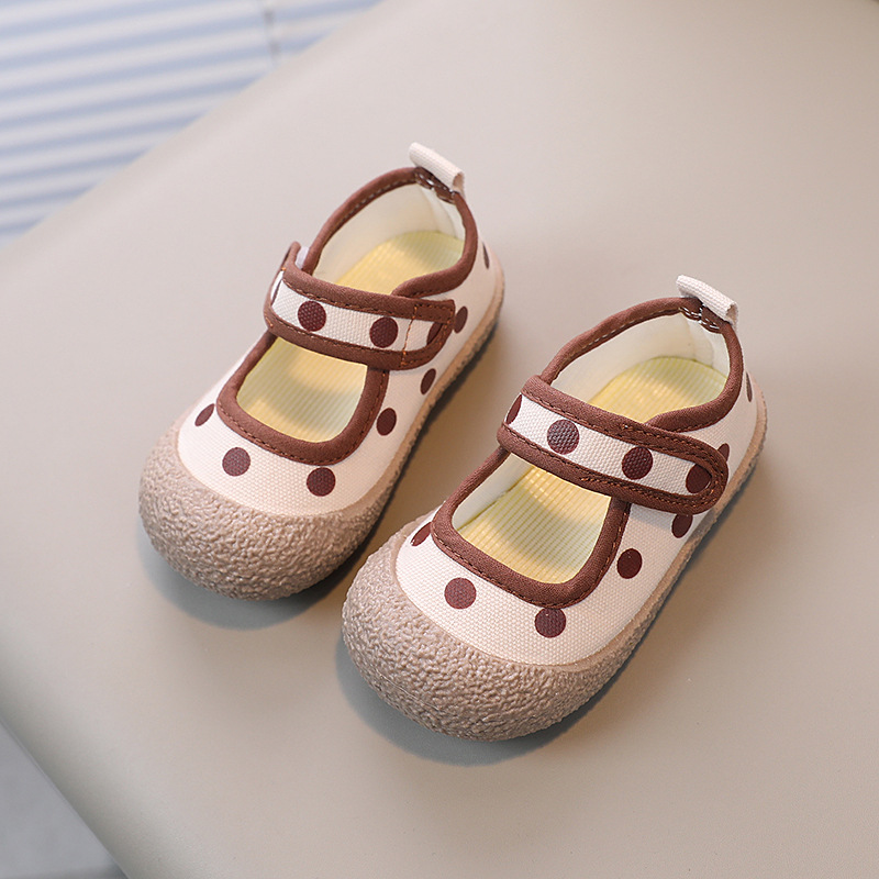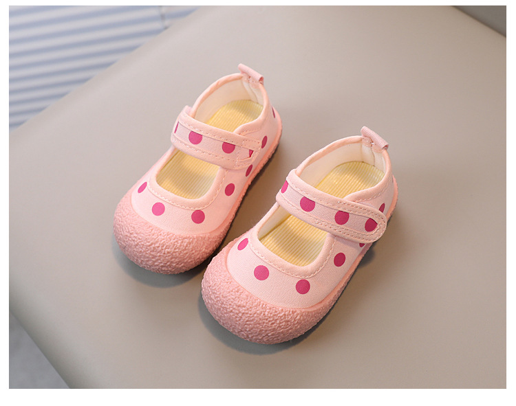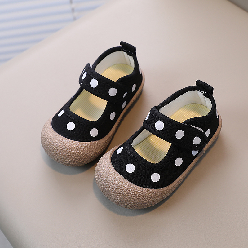 어린이 신발 2023 봄과 여름 새로운 어린이 캔버스 신발 소년과 소녀 웨이브 도트 베이비 부드러운 바닥 벨크로 캐주얼 신발 트렌디스토어 가기