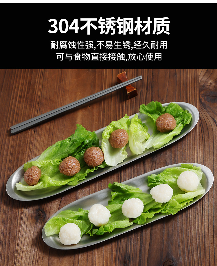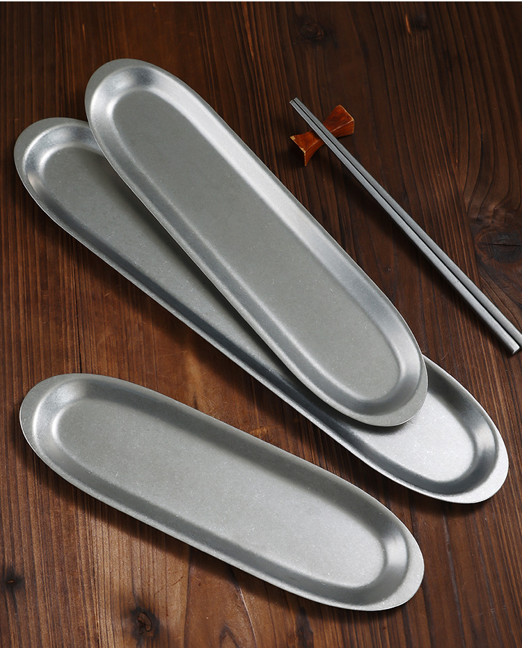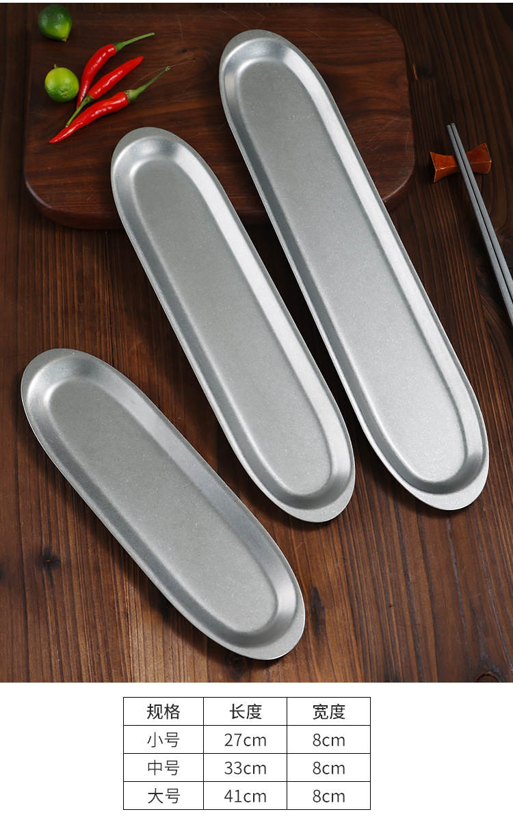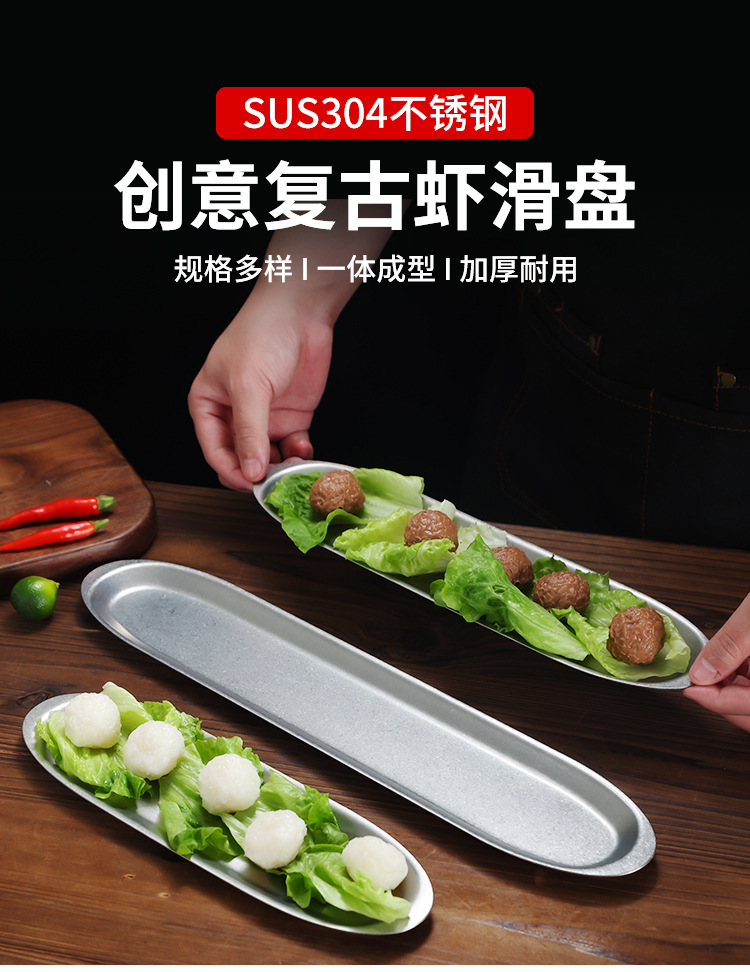 빈티지 한국식 스테인레스 스틸 새우 슬라이딩 플레이트 오래 된 바베큐 뱀 접시 쇠고기 공 접시 타원형 직사각형 접시 희미한 돼지 접시