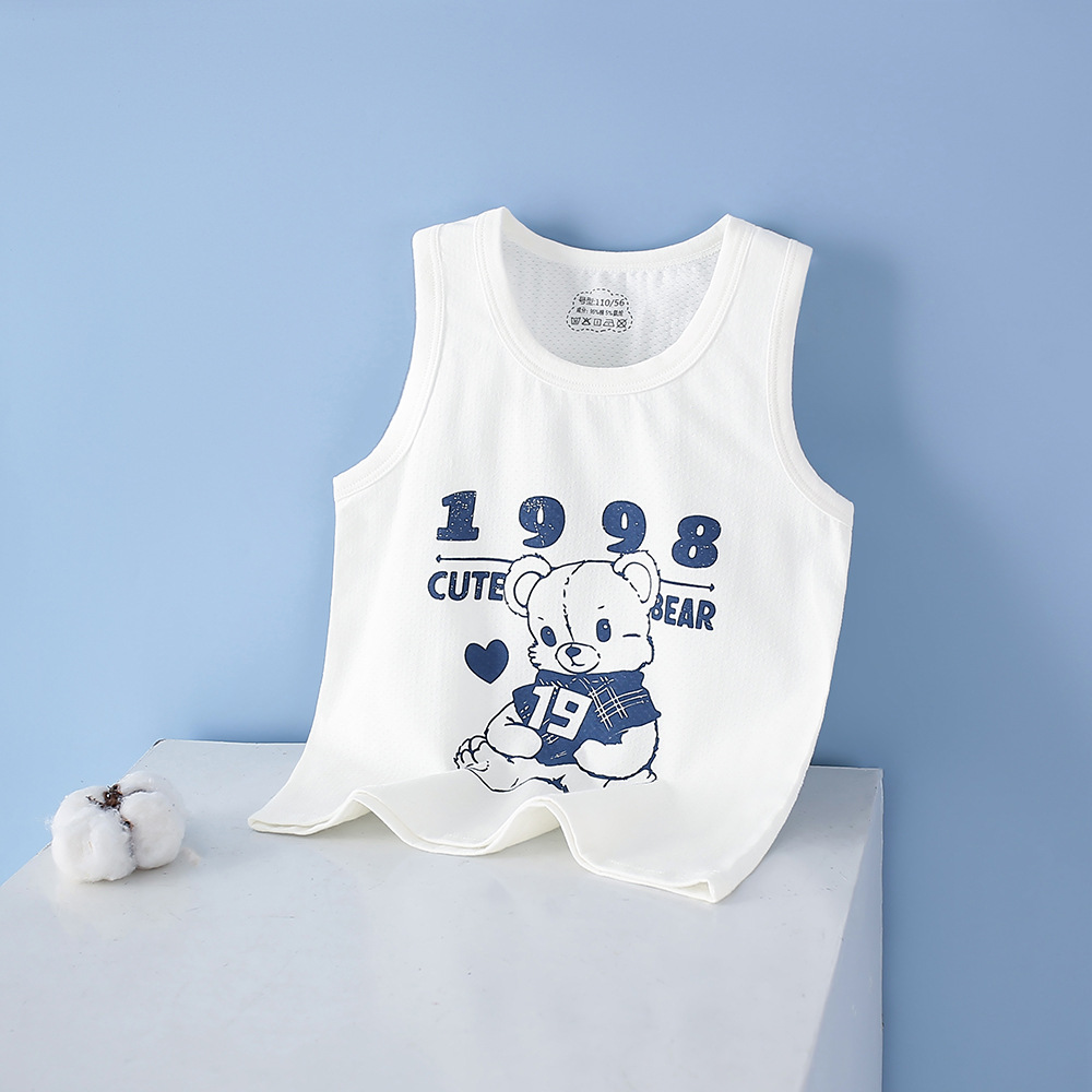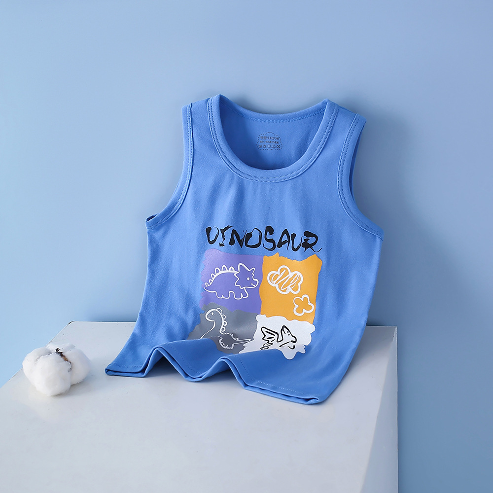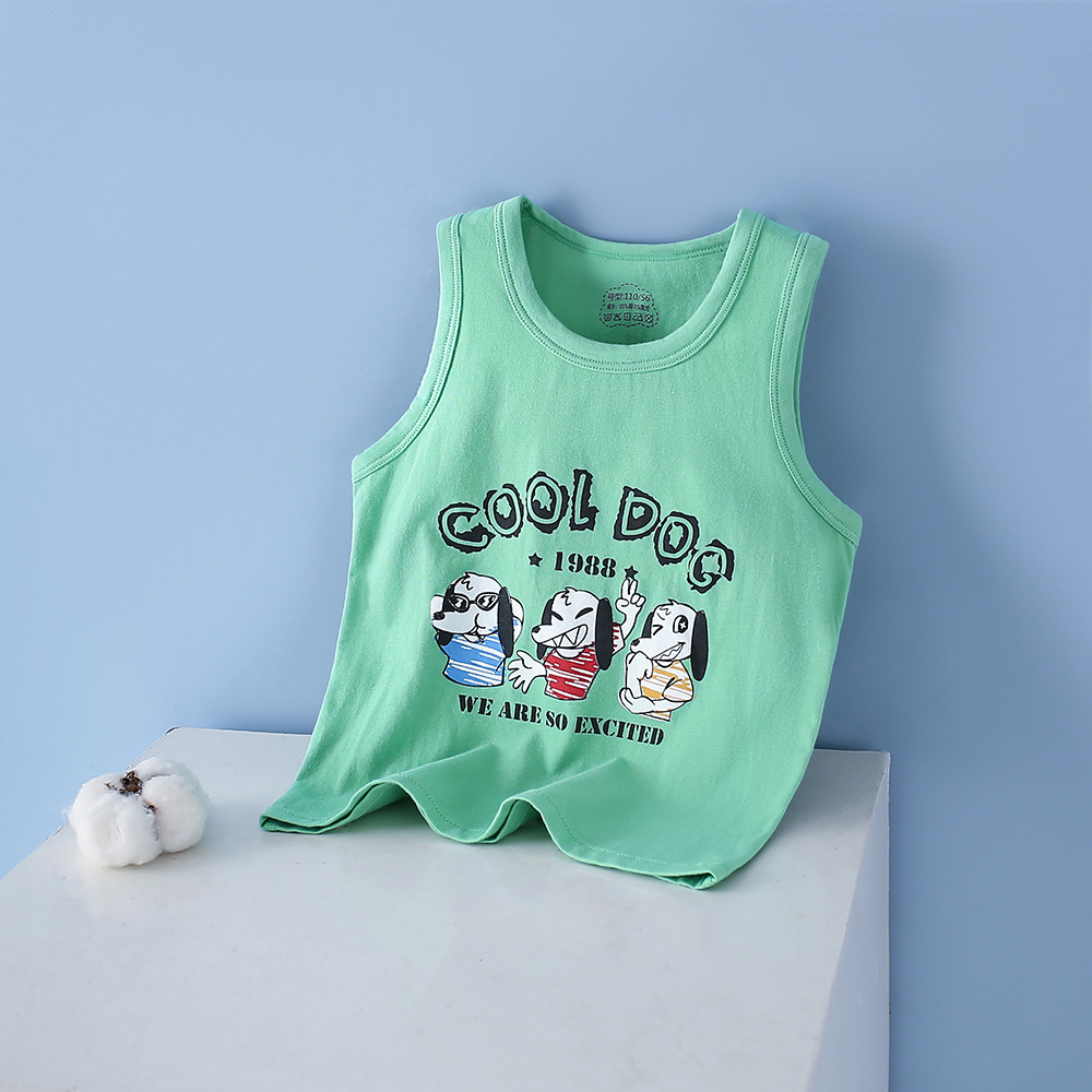 여름 어린이 조끼 빗질 코튼 라이크라 소년 만화 인쇄 간단한 민소매 소녀 만화 탑 기본 배치스토어 가기