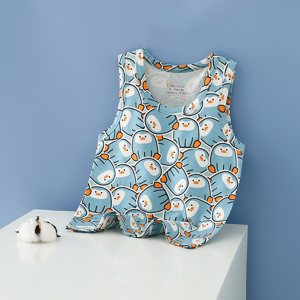 여름 어린이 조끼 빗질 코튼 라이크라 소년 만화 인쇄 간단한 민소매 소녀 만화 탑 기본 배치