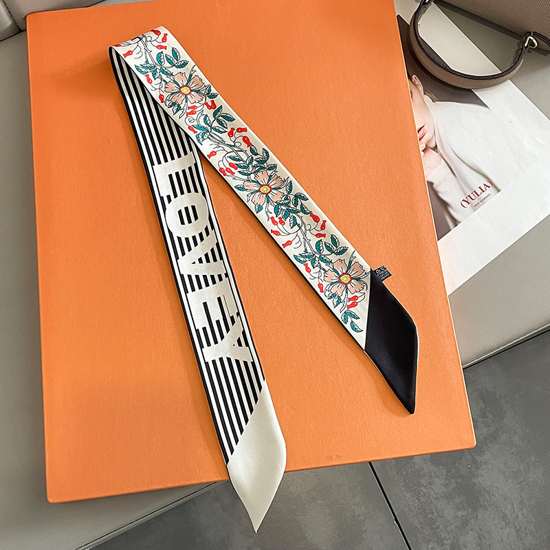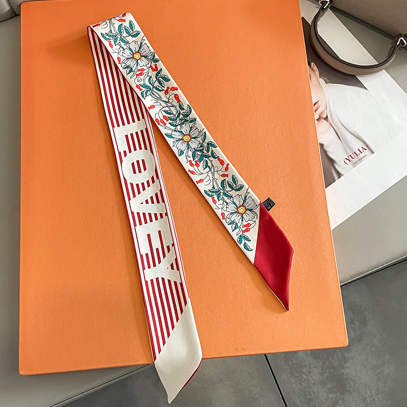 2023 봄과 가을 예술적 꽃 좁은 긴 작은 실크 스카프 여성용 헤어 벨트 장식 스카프 리본 타이 포장 핸들 실크스토어 가기