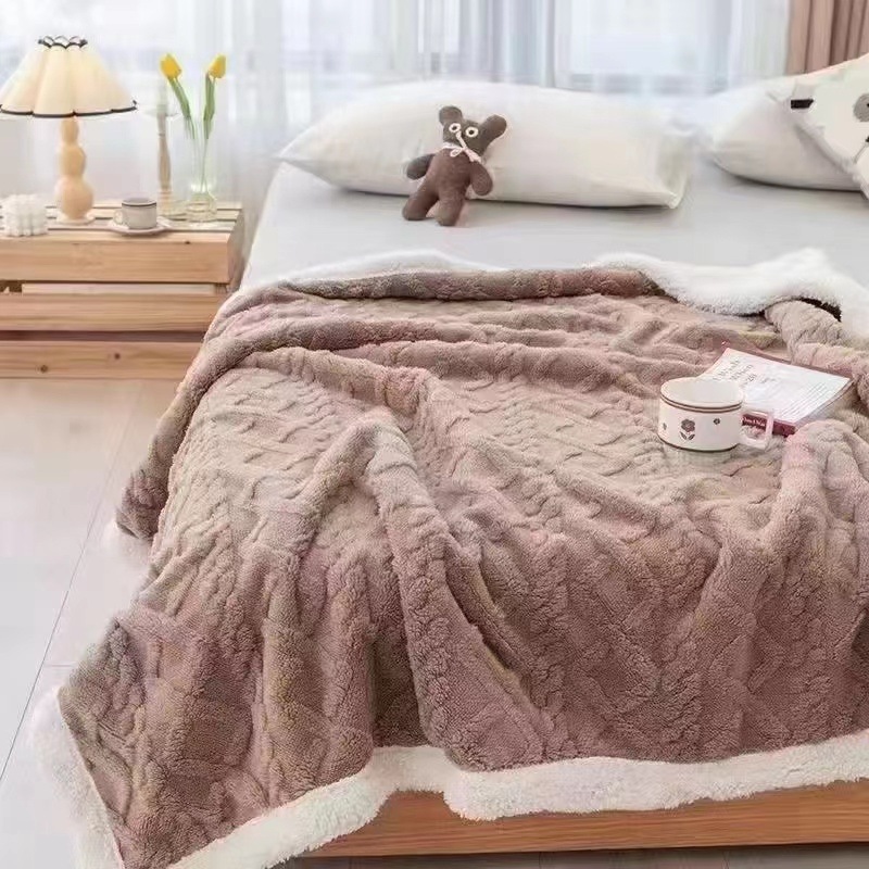재고 직접 판매 더블 레이어 두껍게 lambswool 플란넬 담요 산호 양털 담요 사무실 레저 낮잠 담요스토어 가기