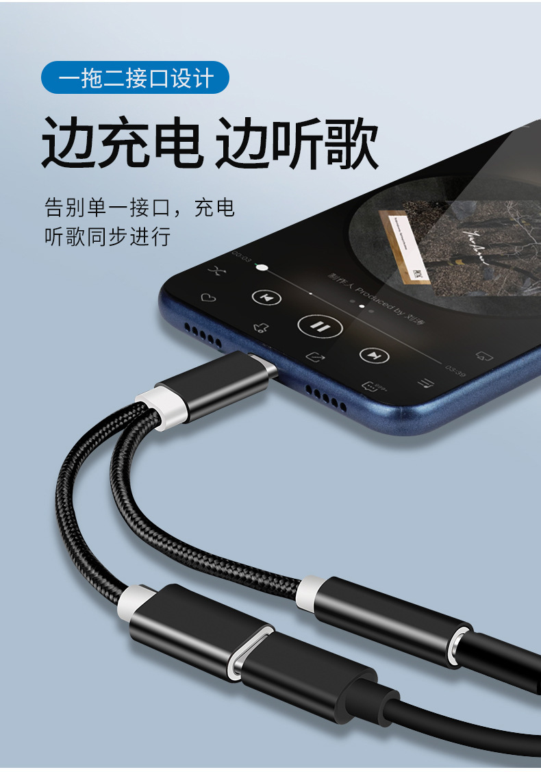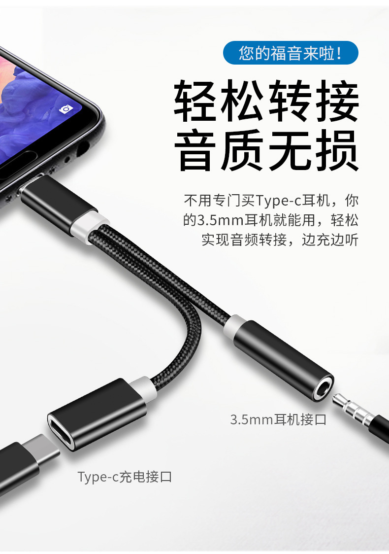Huawei Xiaomi typec 헤드셋 어댑터 tpc 오디오 변환기 노래 듣기 투인원 변환 라인 충전