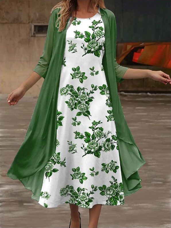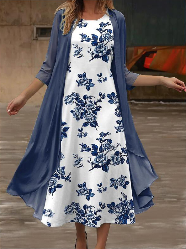 2023 유럽 미국 베스트셀러 독립역 아마존 소원 봄과 가을 패션 우아한 쉬폰 원피스 투피스 세트