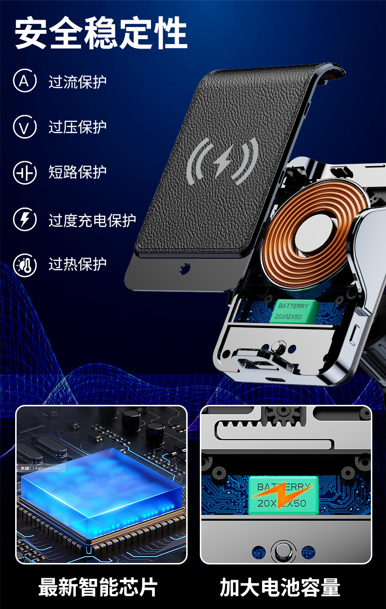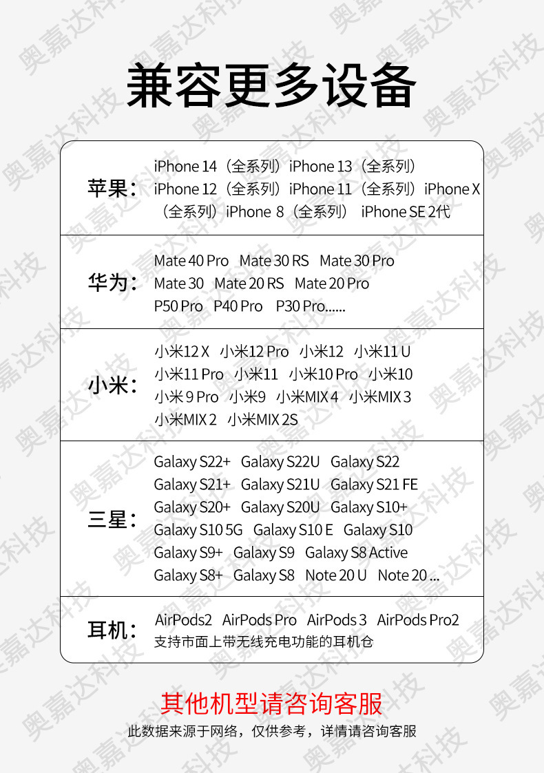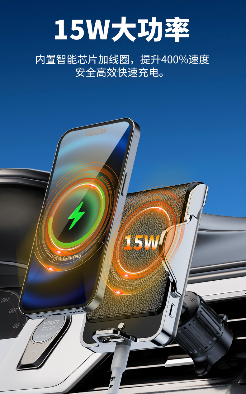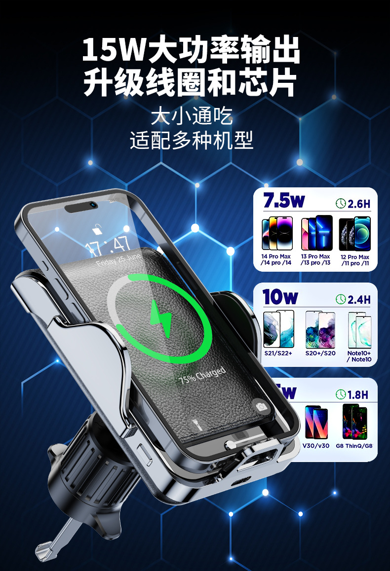 输出:5W 7.5W 10W 15W自动识别充电夹锁