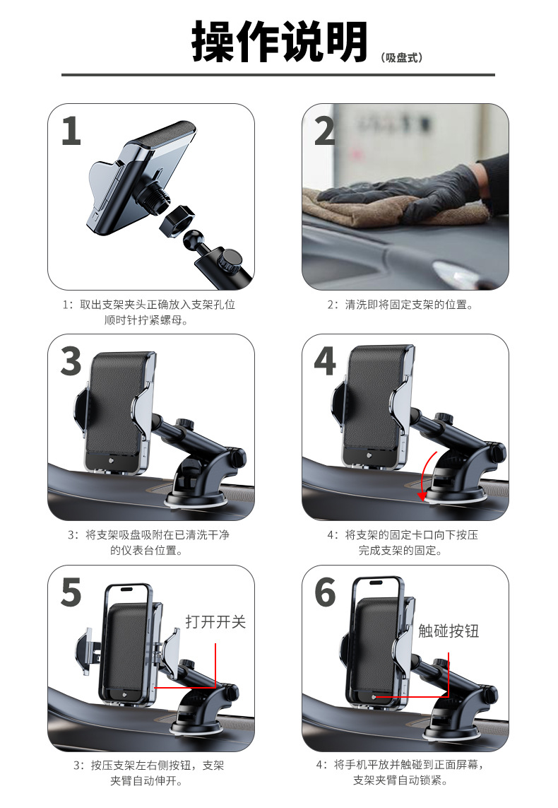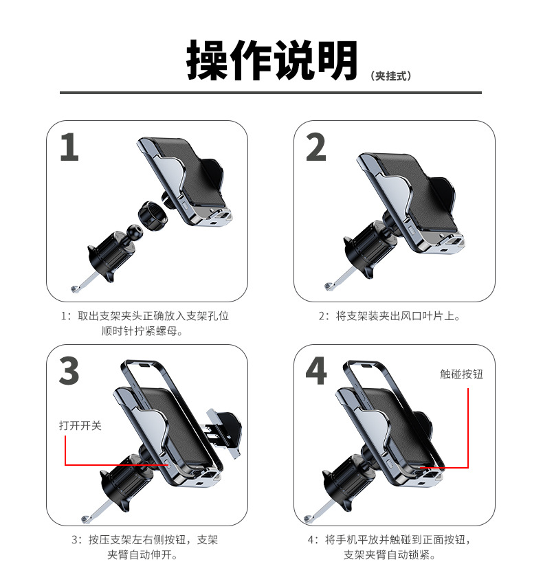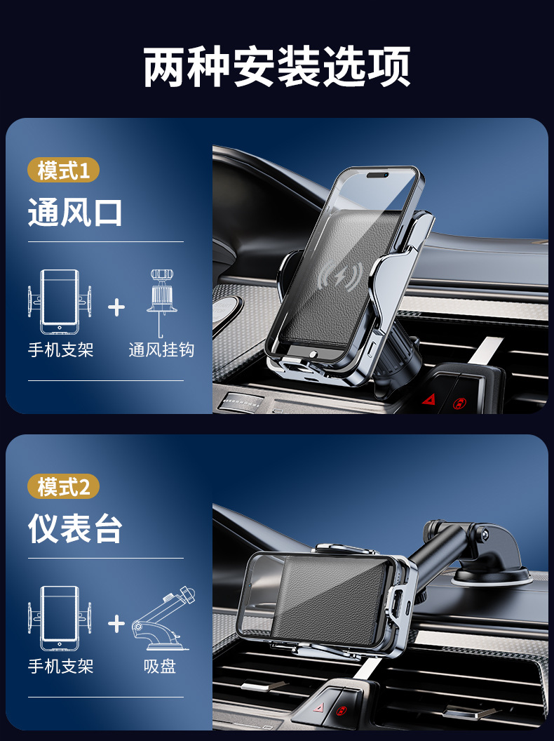 默认套餐:吸盘底座+出风口鹰嘴夹子+2A充电线