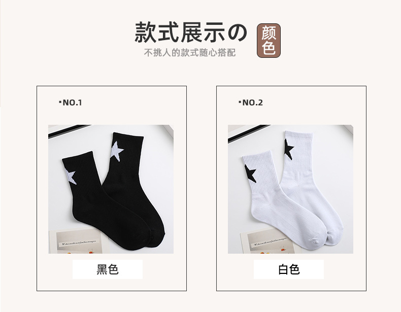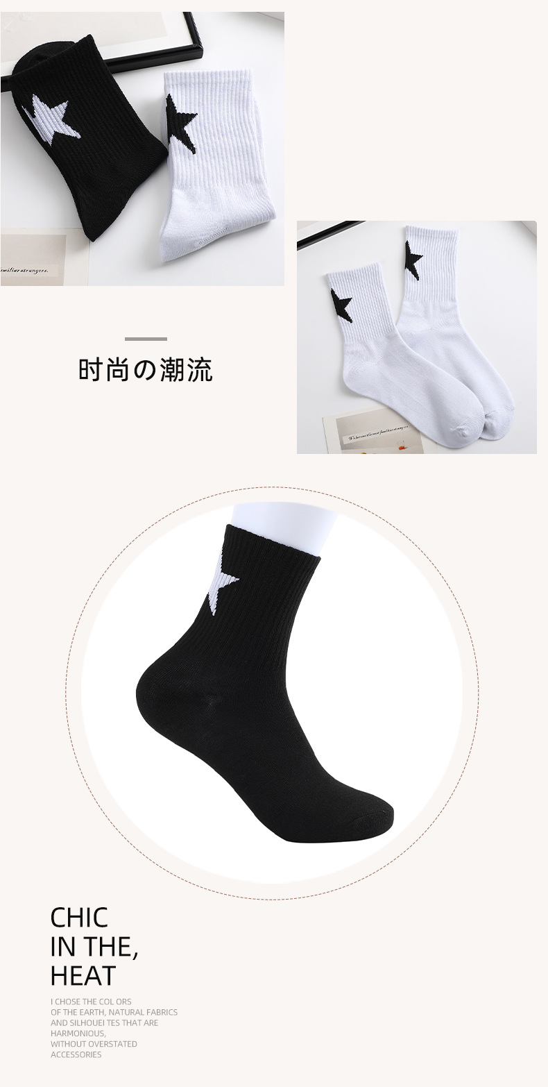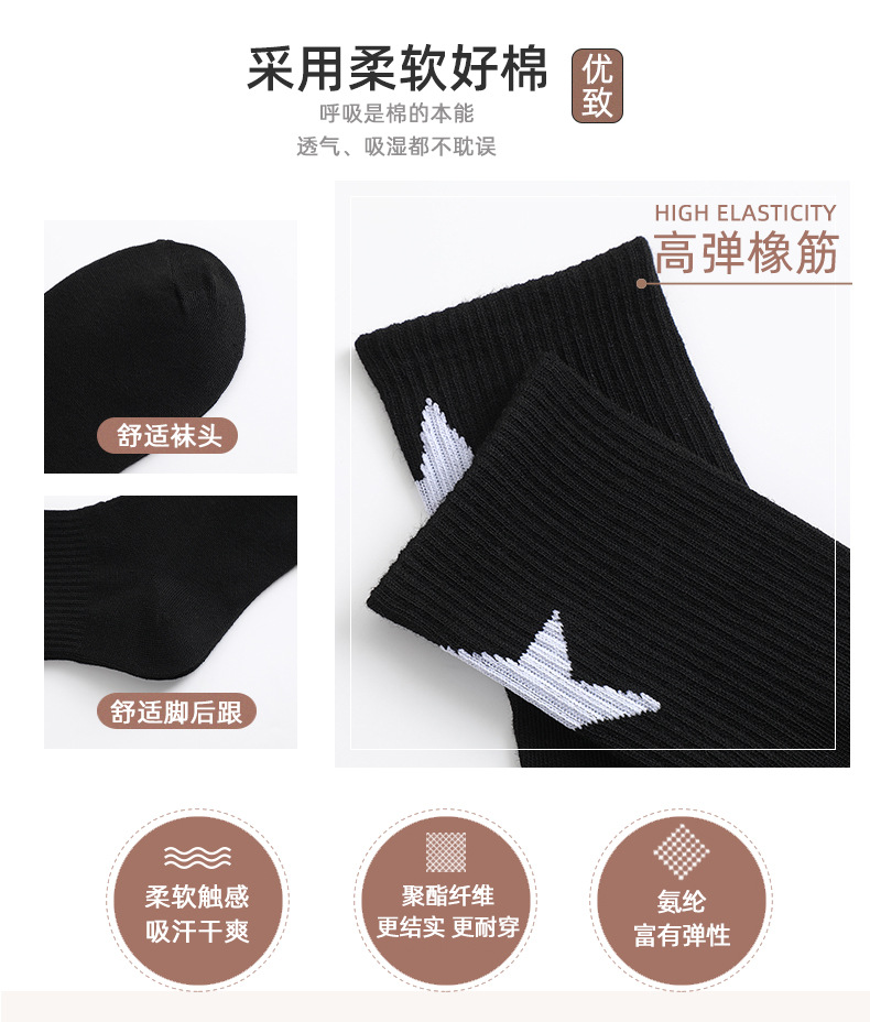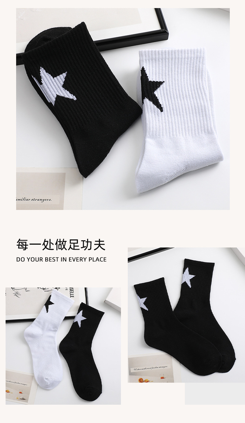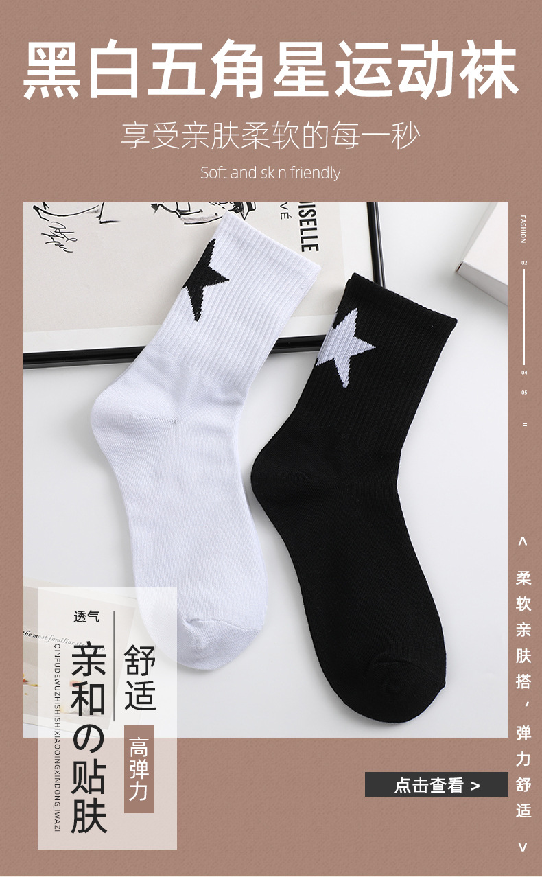 스트리트 스타일 흑백 5 각형 튜브 양말 조커 트렌드 스타킹 남학생 농구 통기성 스포츠 양말 도매스토어 가기