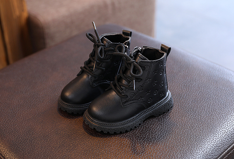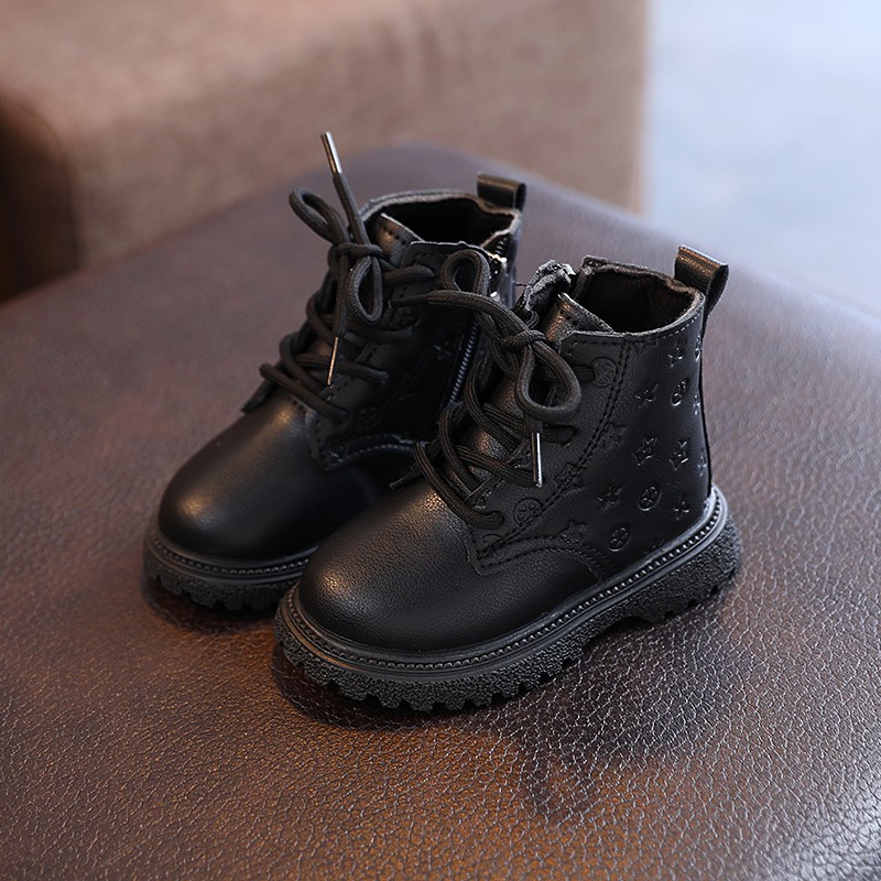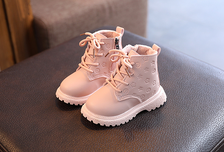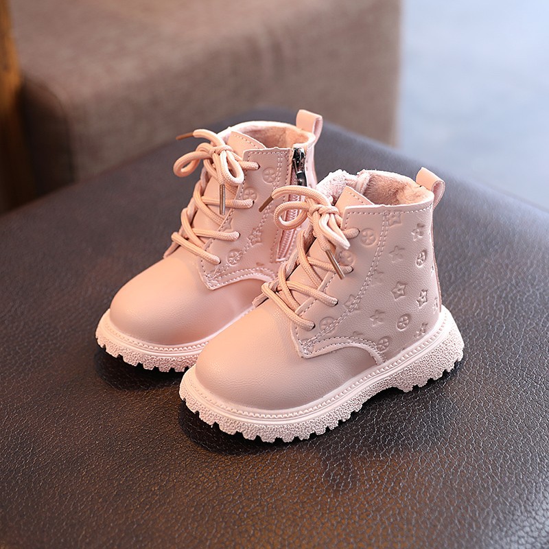2023 가을과 겨울 새로운 2 면 따뜻한 아기 소녀 얇은 벨벳 레이스 업 가죽 부츠 소년 마틴 부츠 귀여운 인쇄 짧은 부츠
