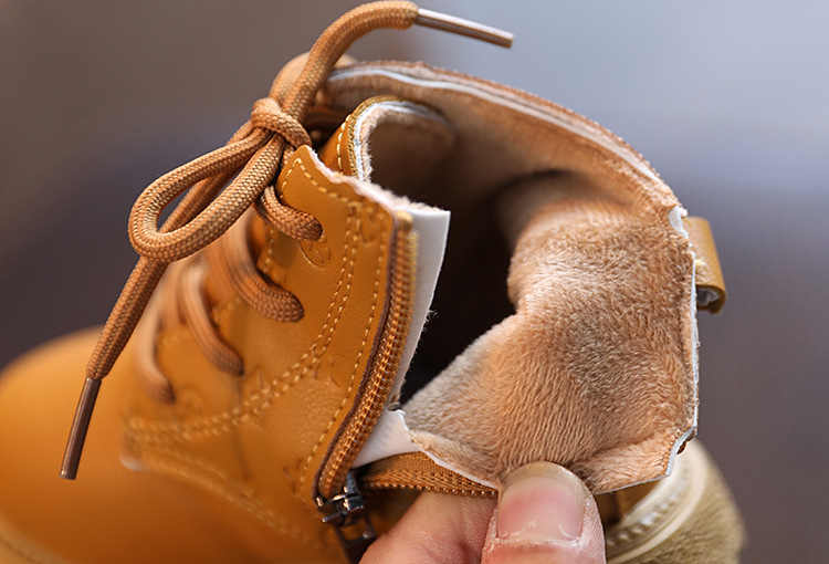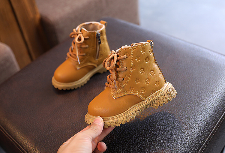 2023 가을과 겨울 새로운 2 면 따뜻한 아기 소녀 얇은 벨벳 레이스 업 가죽 부츠 소년 마틴 부츠 귀여운 인쇄 짧은 부츠스토어 가기
