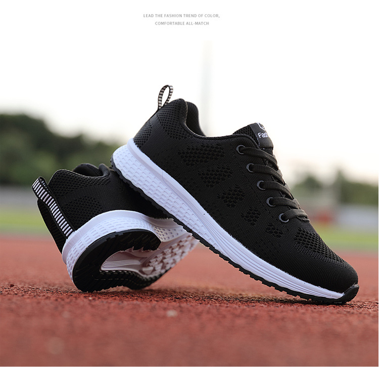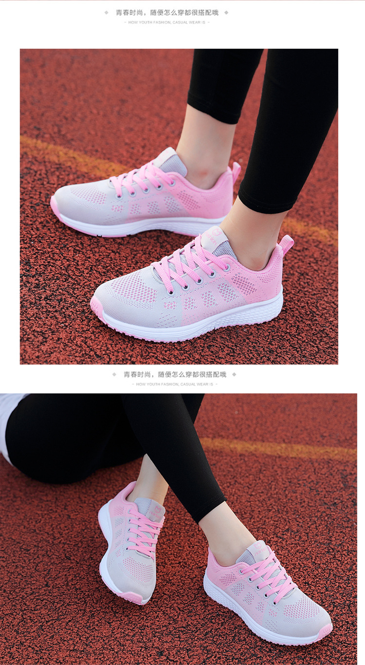 2023 봄과 가을 새로운 플라잉 짠 신발 한국 스타일 캐주얼 학생 모든 매치 레이스 업 메쉬 여성 신발 운동화 포레스트 검프 슈즈 여성용스토어 가기