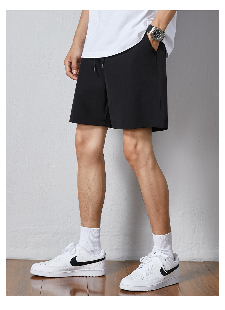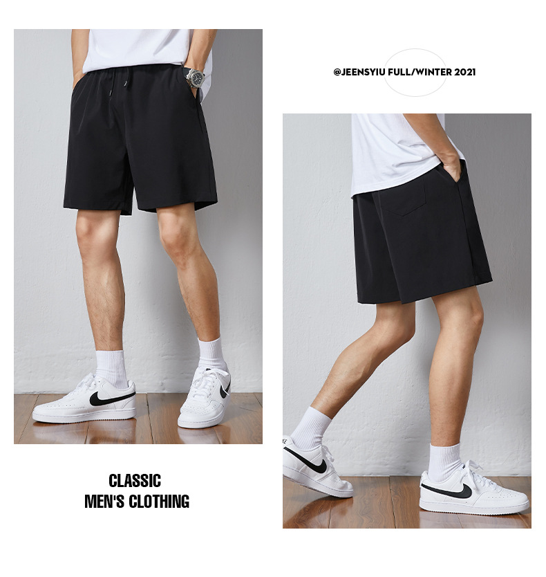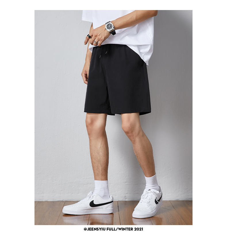 3 점 바지 남성용 유행 브랜드 여름 느슨한 블랙 아이스 실크 반바지 남성용 얇은 캐주얼 속건 러닝 스포츠 바지