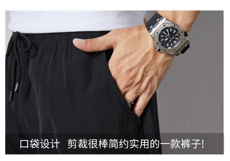3 점 바지 남성용 유행 브랜드 여름 느슨한 블랙 아이스 실크 반바지 남성용 얇은 캐주얼 속건 러닝 스포츠 바지스토어 가기
