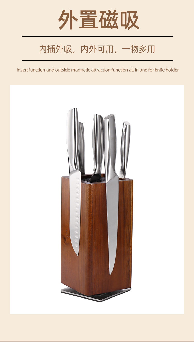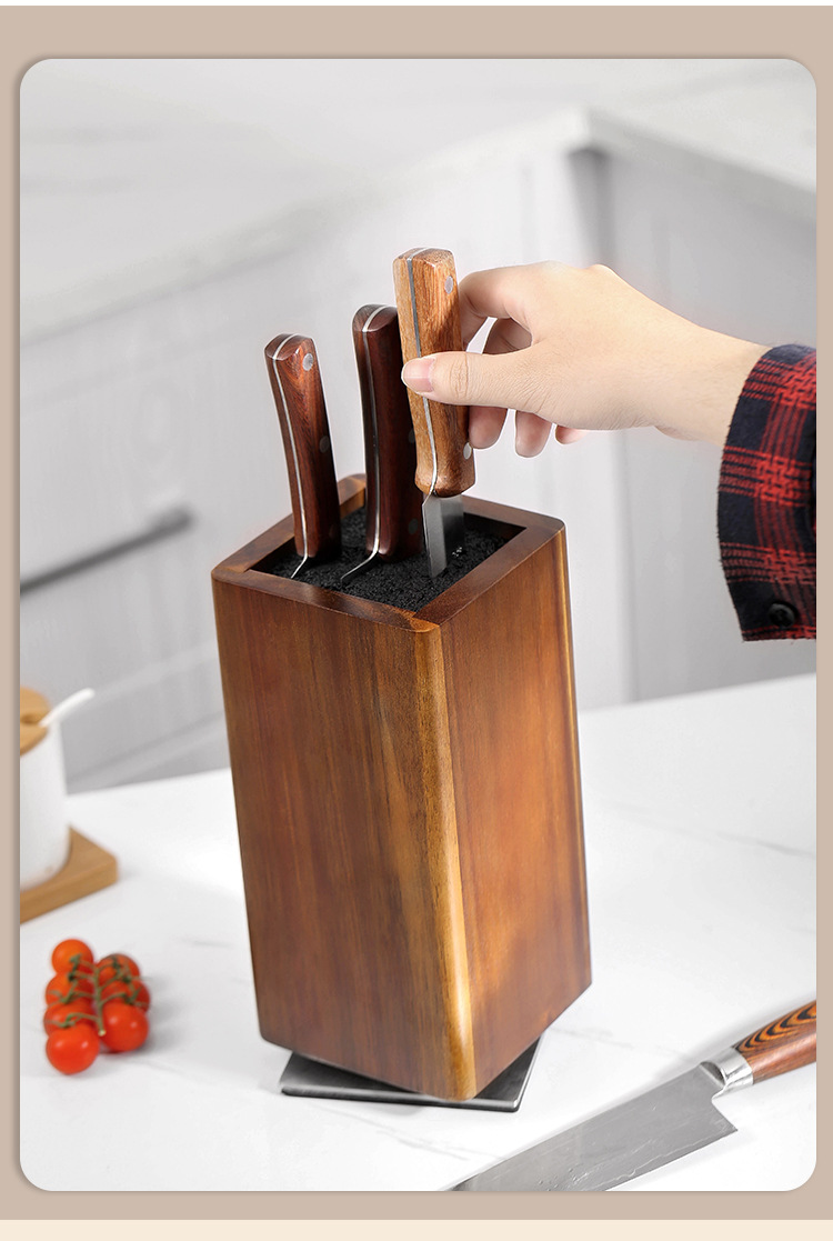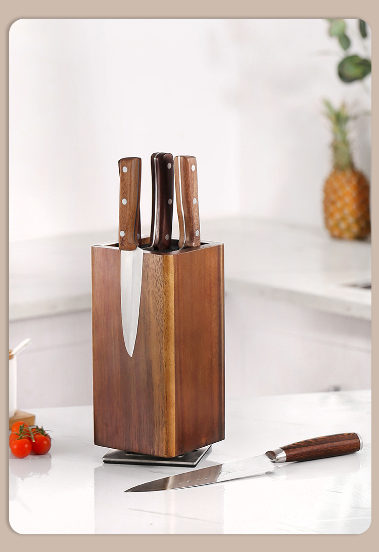 새로운 도착 단단한 나무 360 ° 회전 다기능 자기 자기 흡입 주방 칼 홀더 주방 무료 삽입 칼 홀더스토어 가기