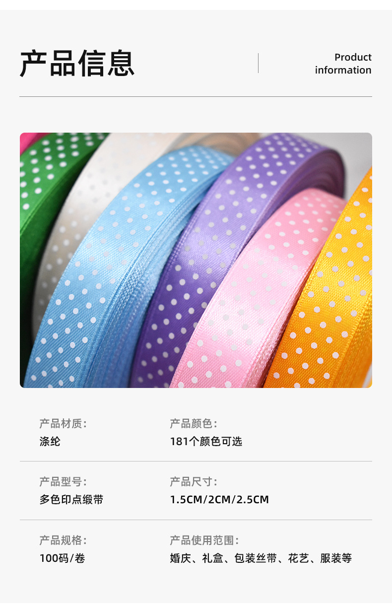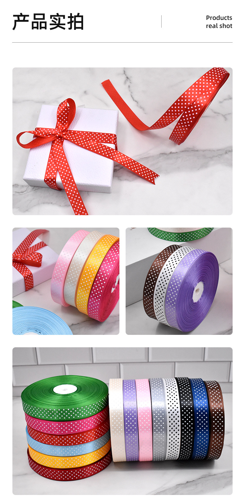 한판 리본, 실크 리본, 재고 있음, 컬러풀한 물방울 무늬 리본, 도트 리본, 선물 장식 리본, 로고 인쇄 가능스토어 가기