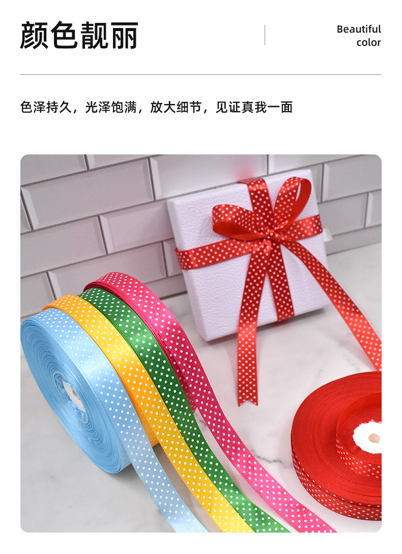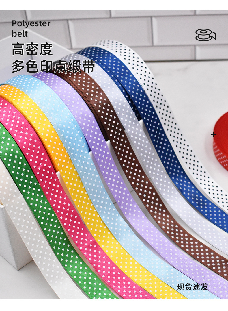 한판 리본, 실크 리본, 재고 있음, 컬러풀한 물방울 무늬 리본, 도트 리본, 선물 장식 리본, 로고 인쇄 가능