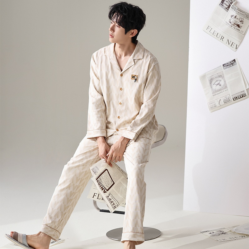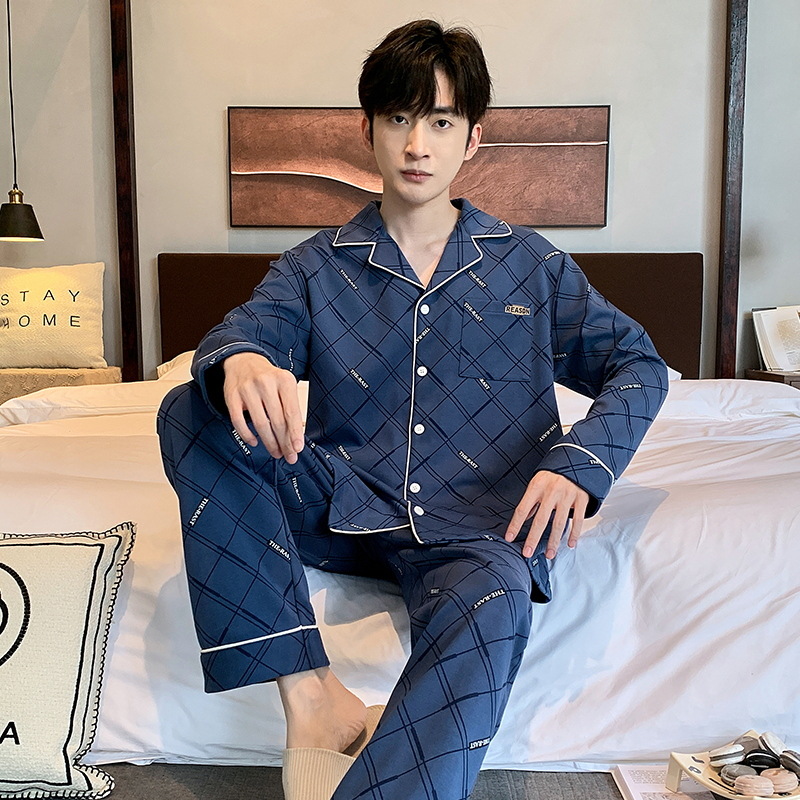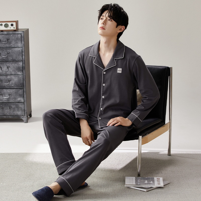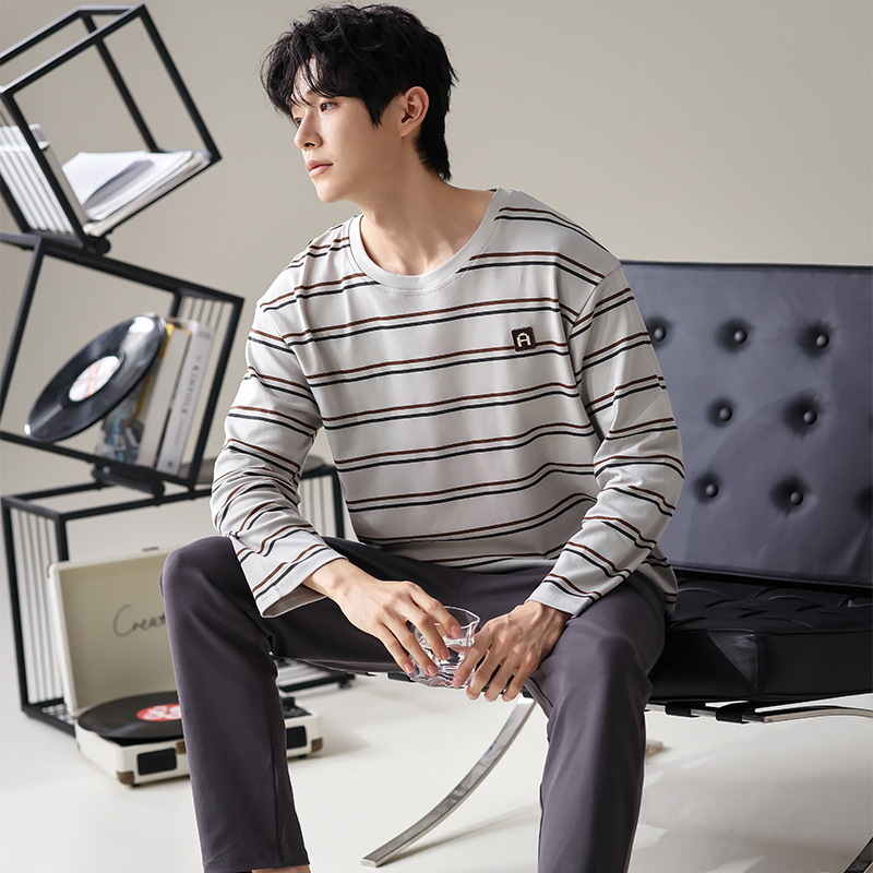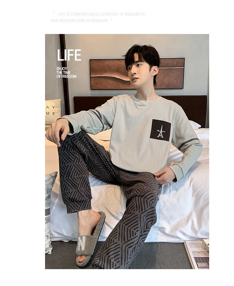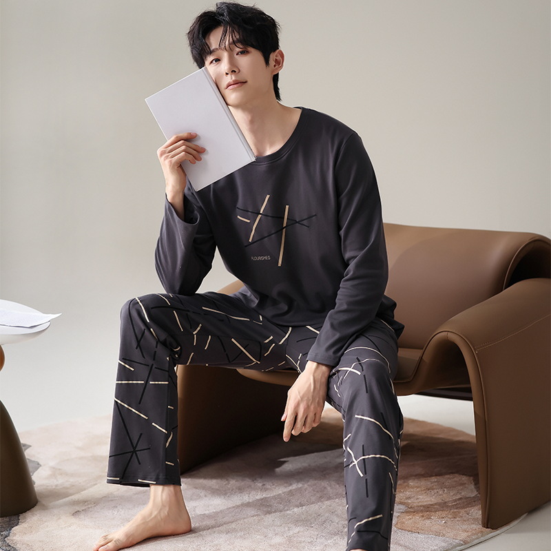 긴 소매 바지 순수 코튼 하이 엔드 한국 스타일 파자마 남성 가을 세트 외부 착용 봄과 가을 캐주얼 느슨한 패션 홈 웨어스토어 가기