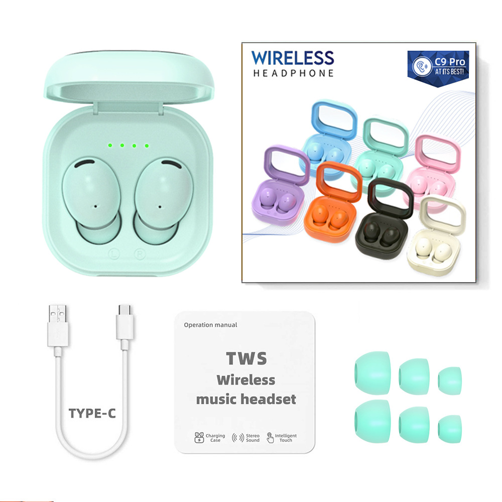 크로스 보더 새로운 C9 Pro 블루투스 헤드셋 무선 이어폰 스포츠 방수 반투명 좋은 음질 5.3 인 이어스토어 가기