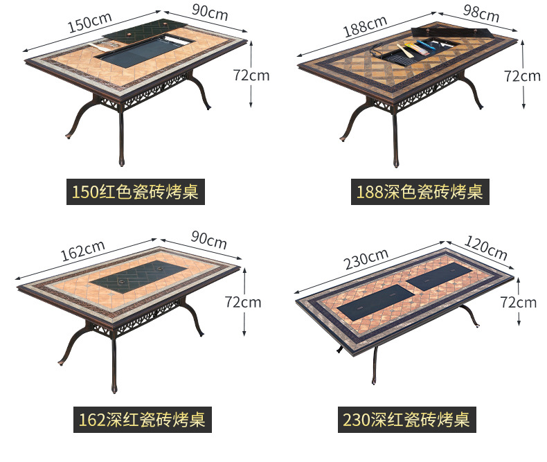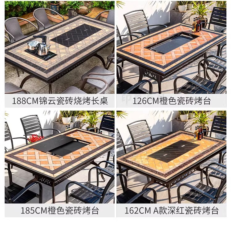 • 단일 테이블: 230x120 깊은 빨간색 타일 바베큐 테이블