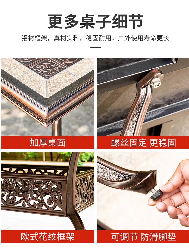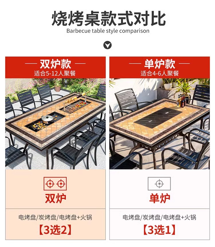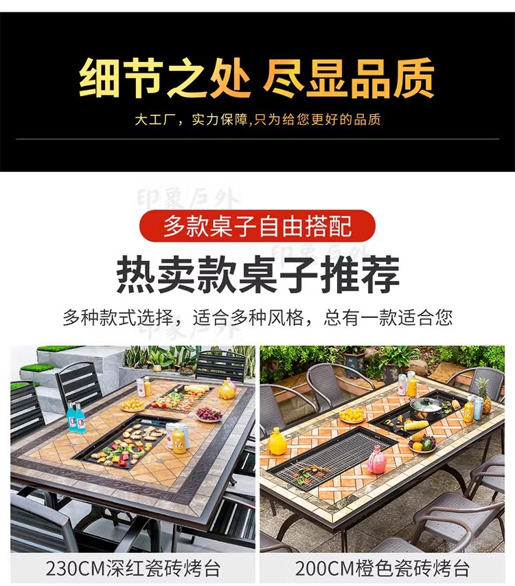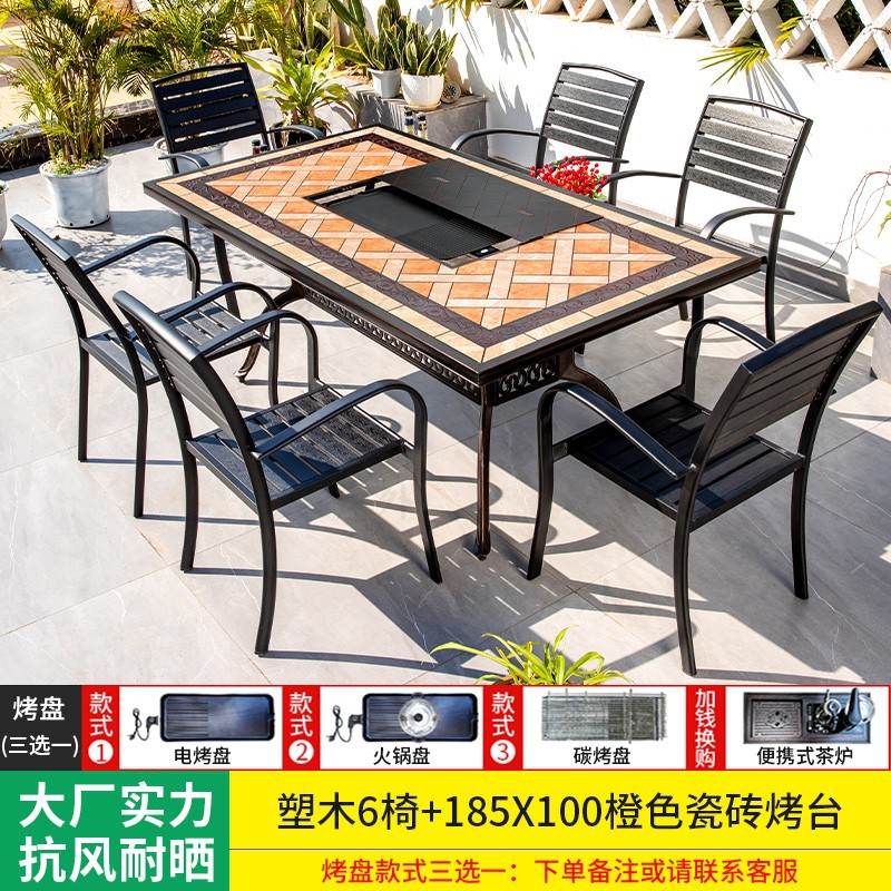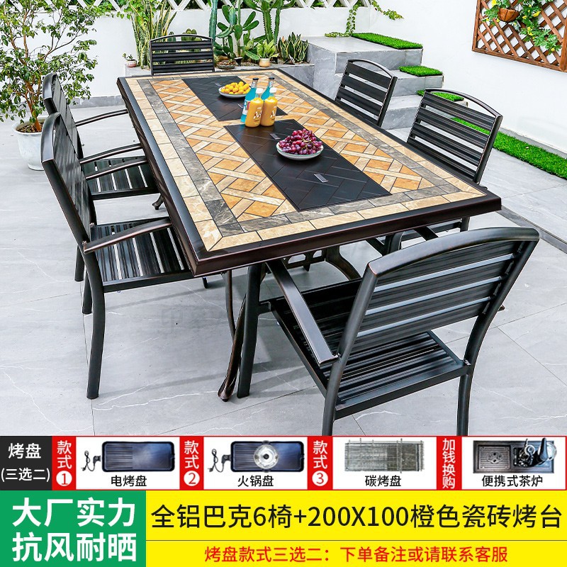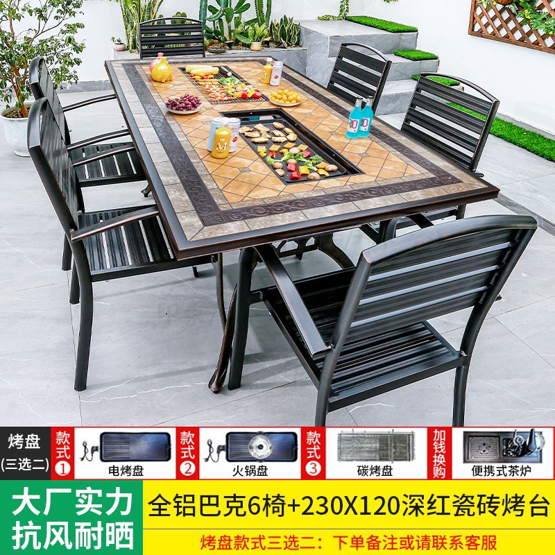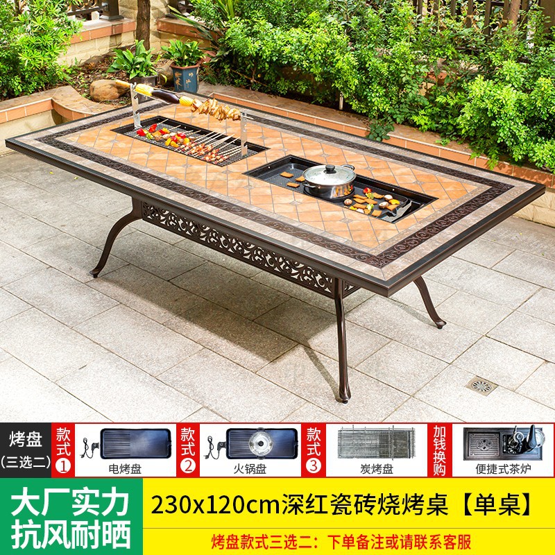 • 모든 알루미늄 벅 6 의자 230x120 진홍색 타일 바베큐 테이블 [베이킹 트레이 3 선택 2]]