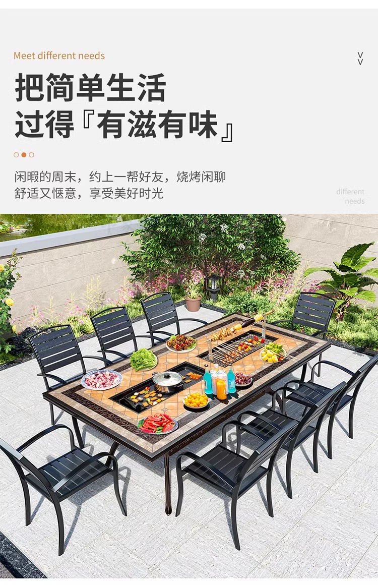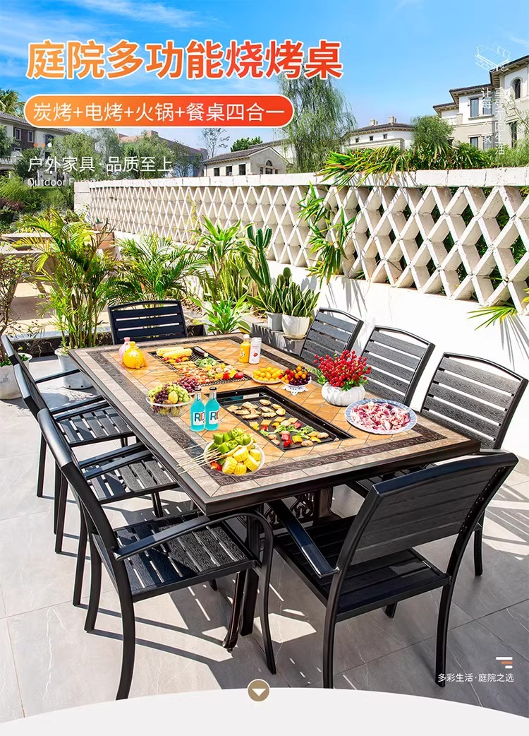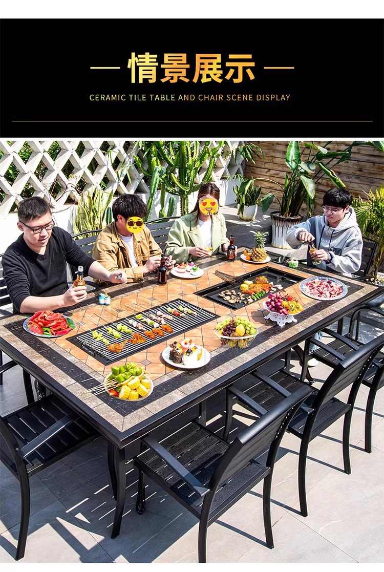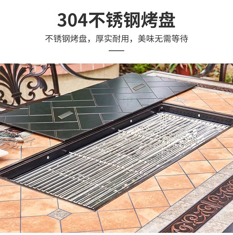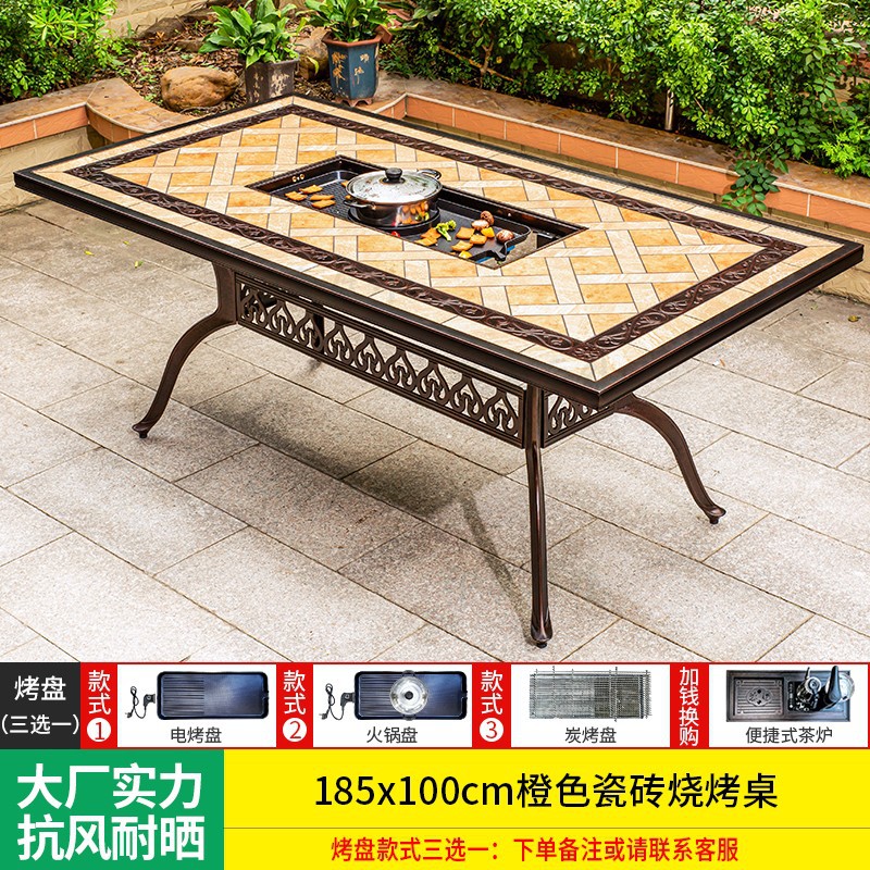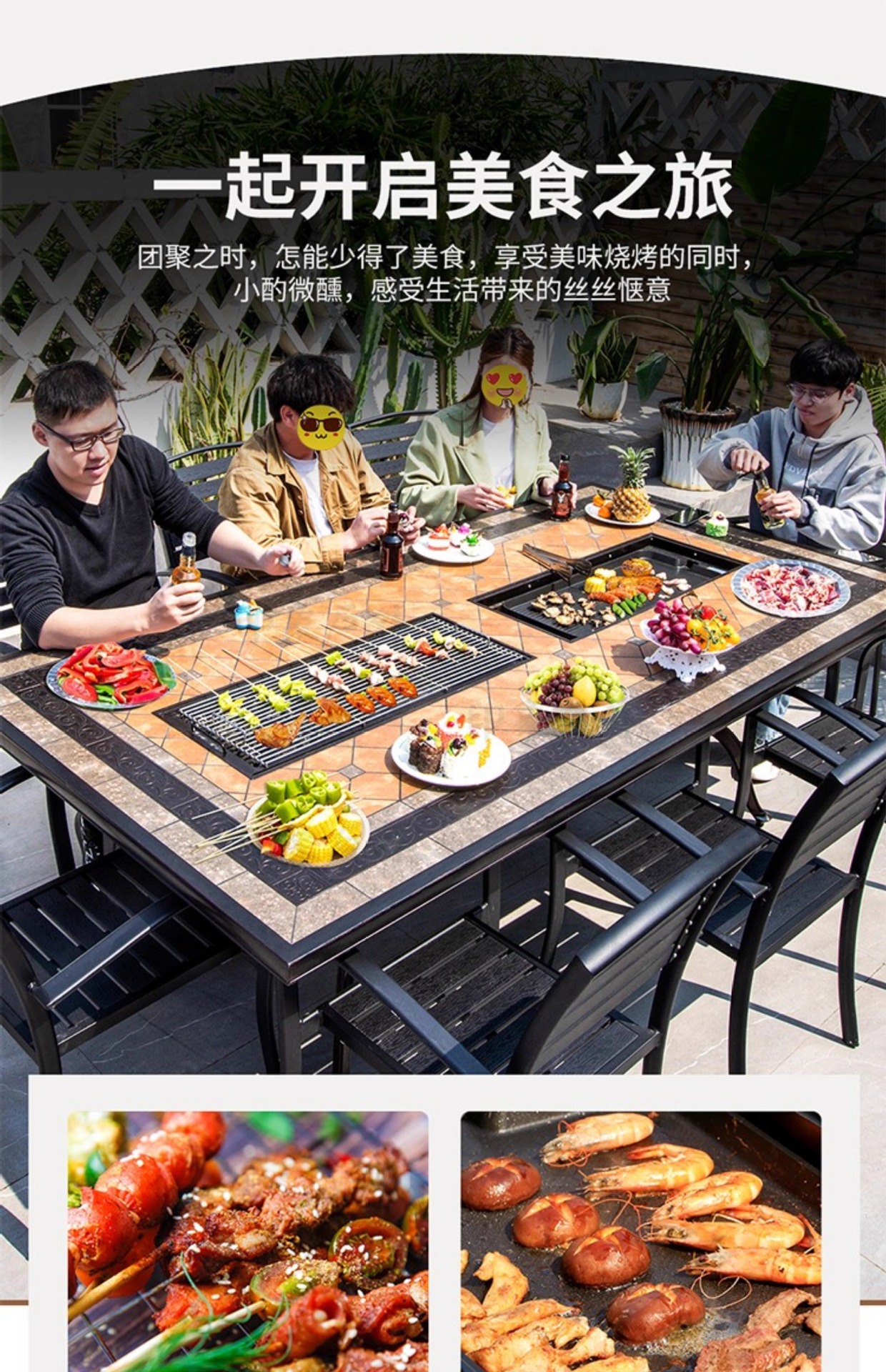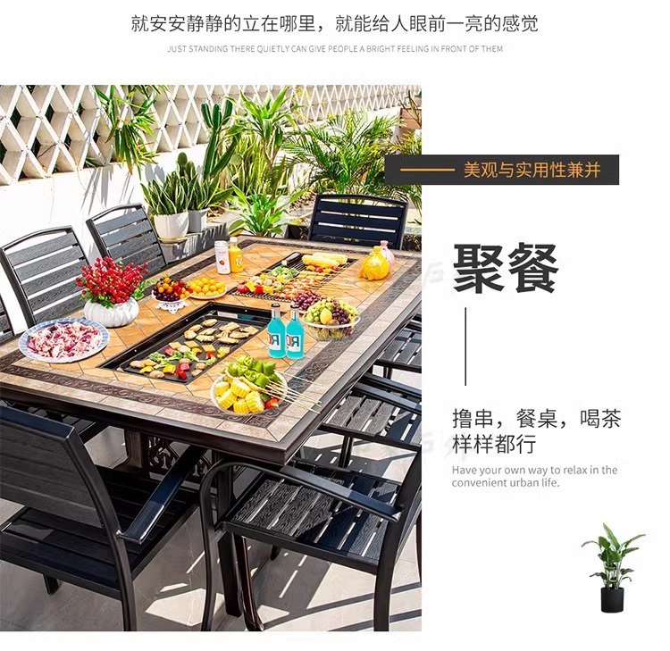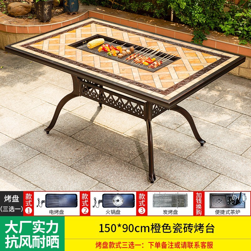 야외 바베큐 테이블 및 의자 주조 알루미늄 상업용 야외 캐주얼 숯 바베큐 그릴 안뜰 테이블 가정용 마당 탄소 그릴