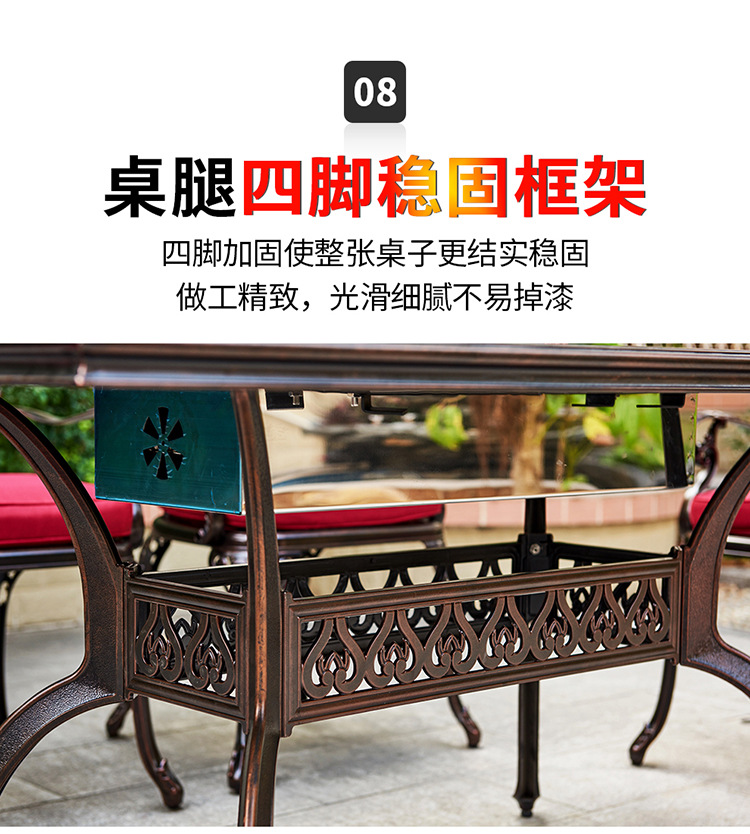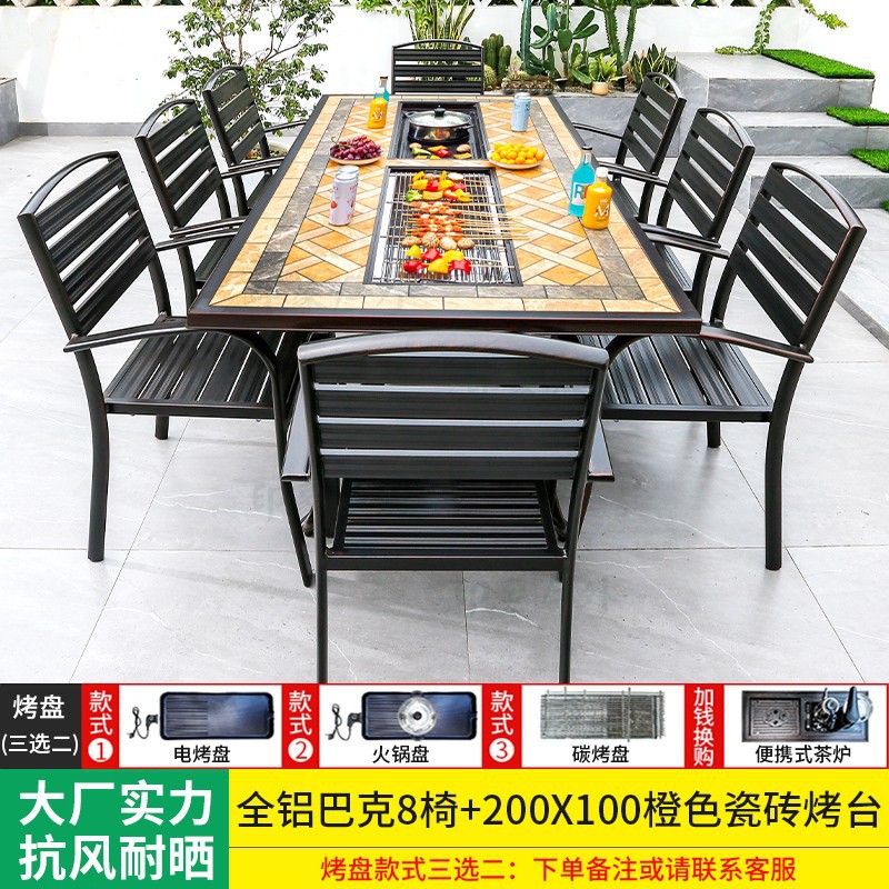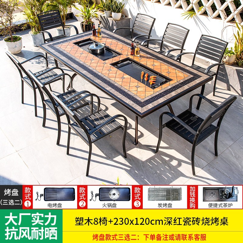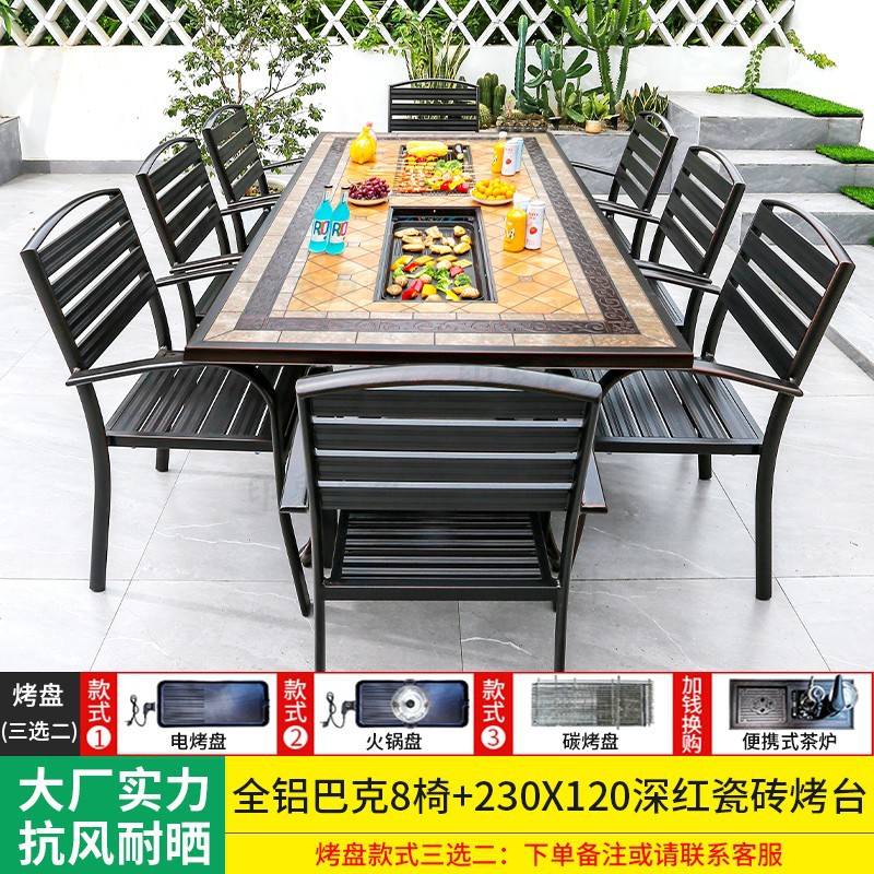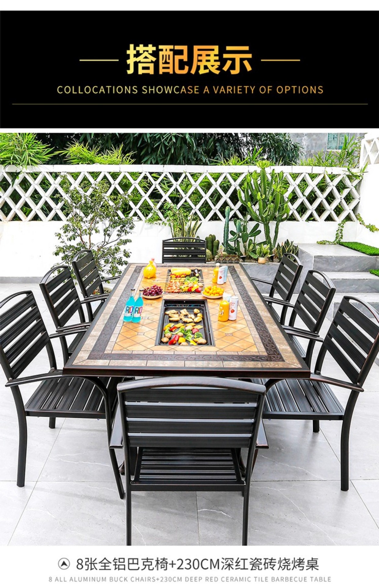 • 모든 알루미늄 벅 8 의자 230x120 진홍색 타일 바베큐 테이블 [베이킹 트레이 3 선택 2]]