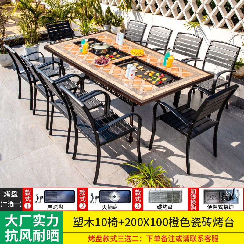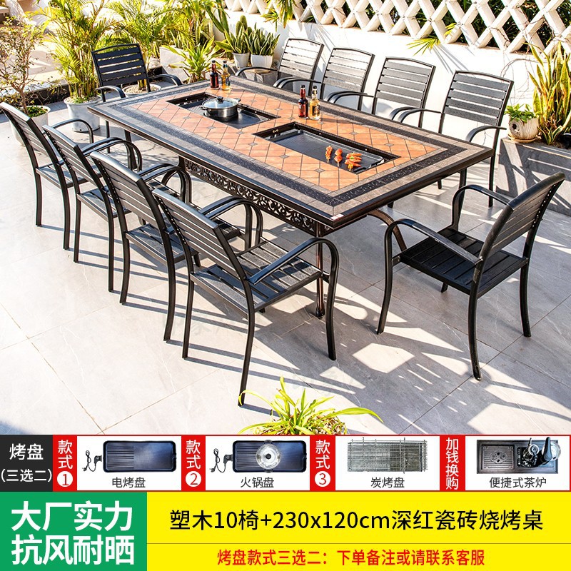 • 플라스틱 나무 10 의자 230x120 진홍색 타일 바베큐 테이블 [베이킹 트레이 3 선택 2]]