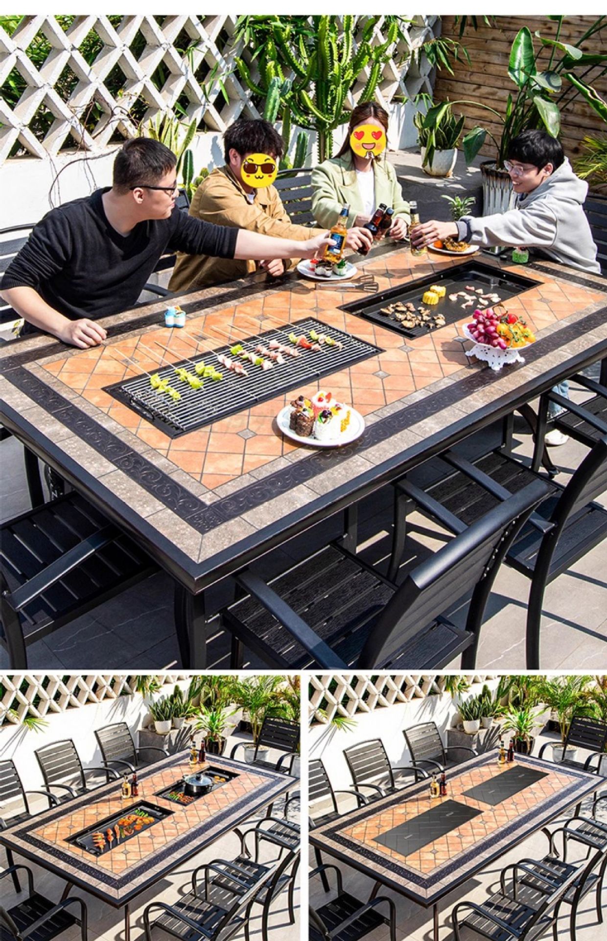 야외 바베큐 테이블 및 의자 주조 알루미늄 상업용 야외 캐주얼 숯 바베큐 그릴 안뜰 테이블 가정용 마당 탄소 그릴스토어 가기