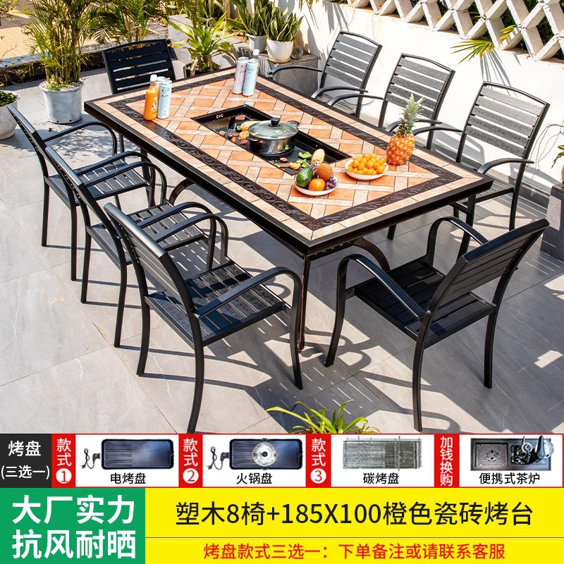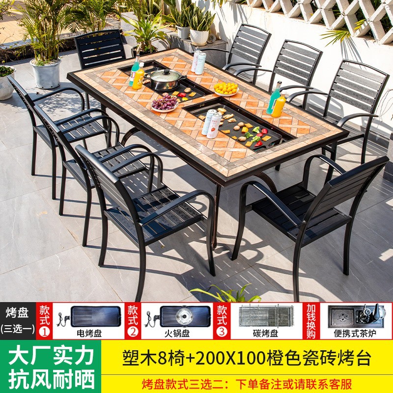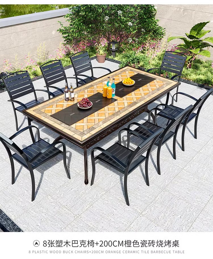• 플라스틱 나무 8 의자 230x120 진홍색 타일 바베큐 테이블 [베이킹 트레이 3 선택 2]]