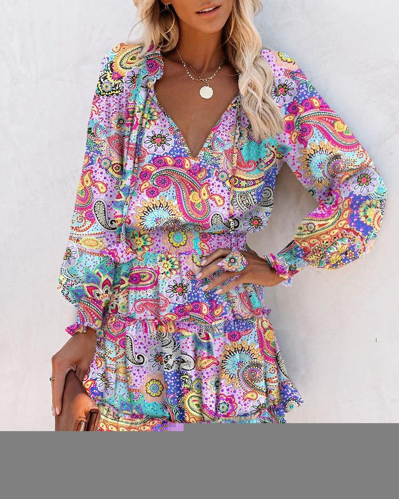 AliExpress 아마존 새로운 긴 소매 V-넥 패션 인쇄 허리 원피스스토어 가기