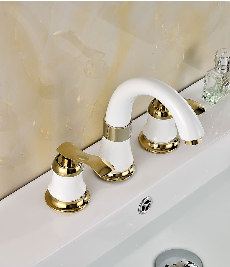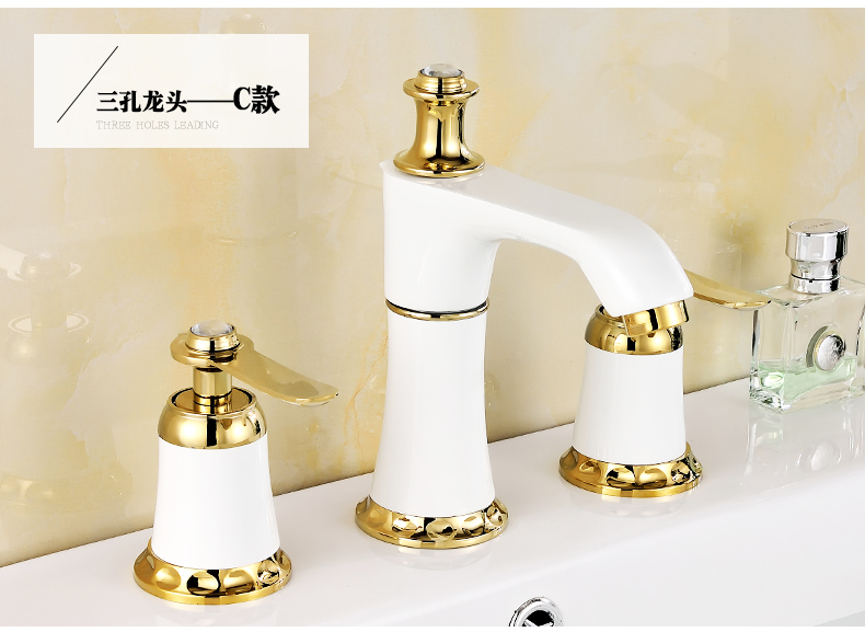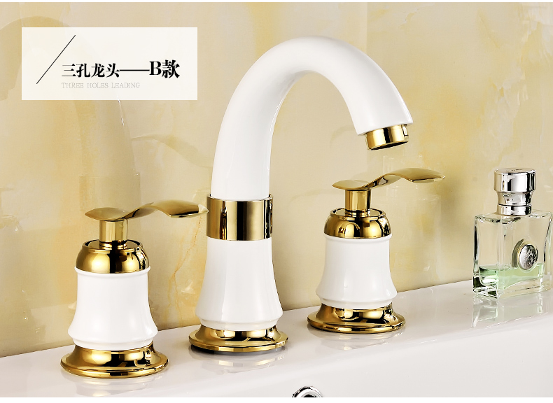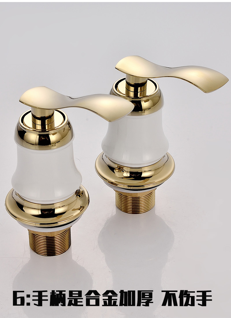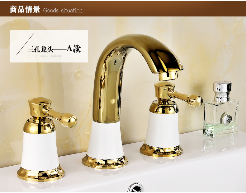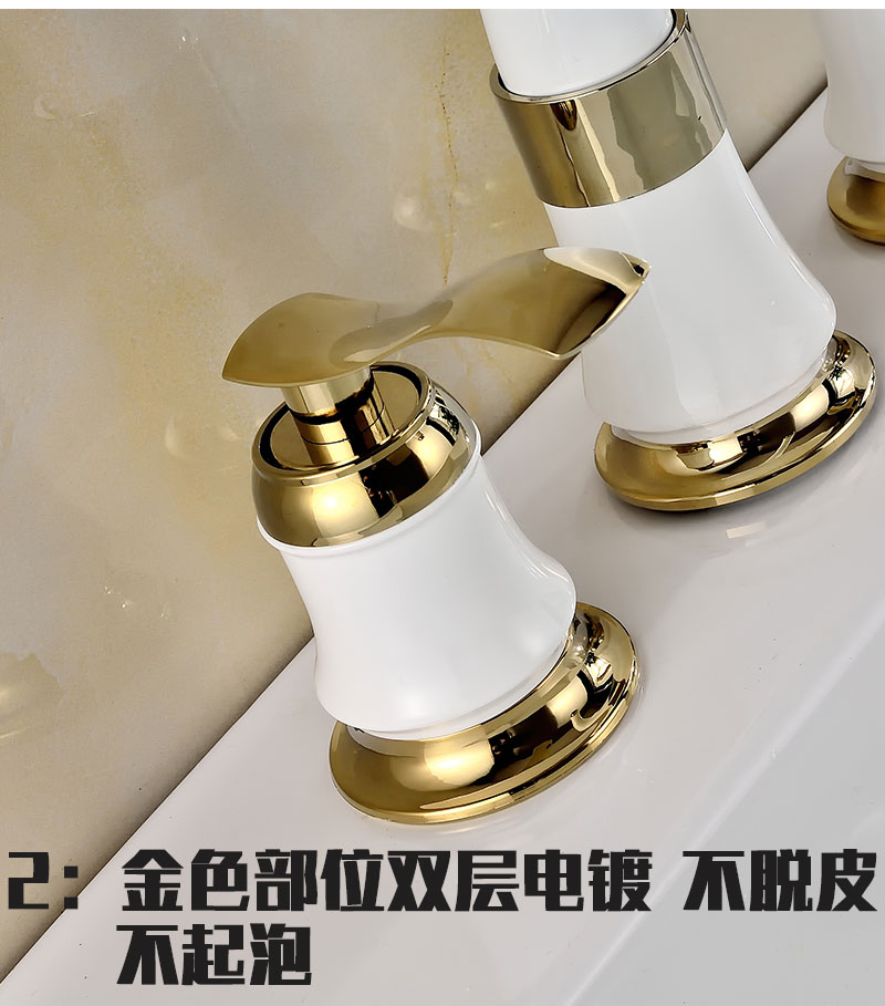 Baiyan Weizhuang 3 홀 분지 수도꼭지 유럽식 황금 3 피스 분할 이중 핸들 이중 제어 온수 및 냉수 수도꼭지