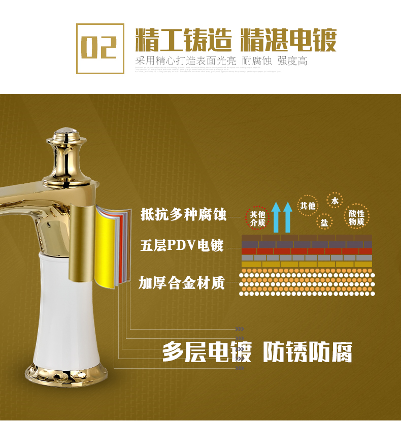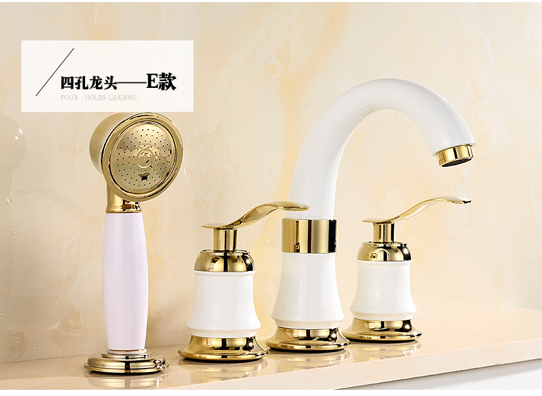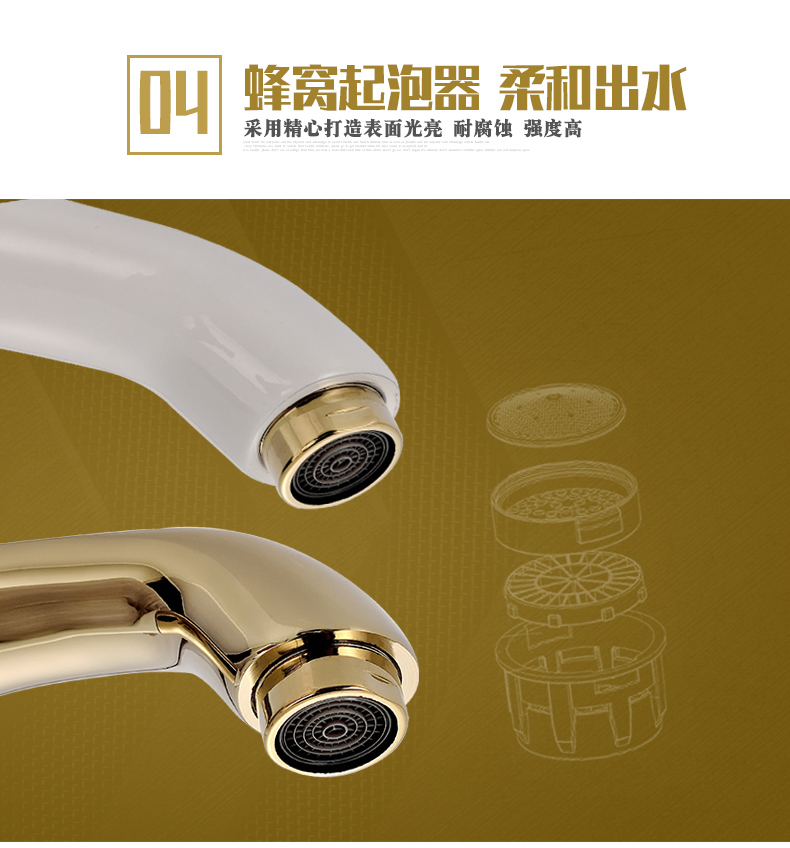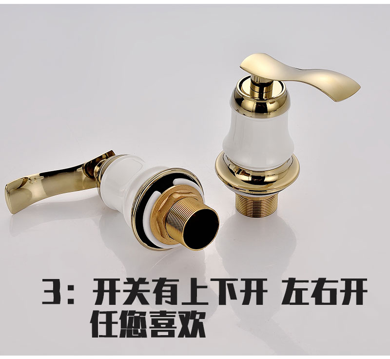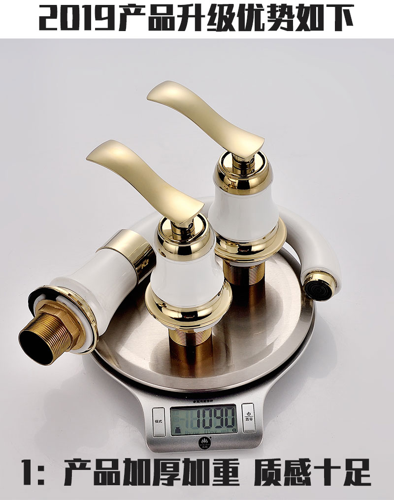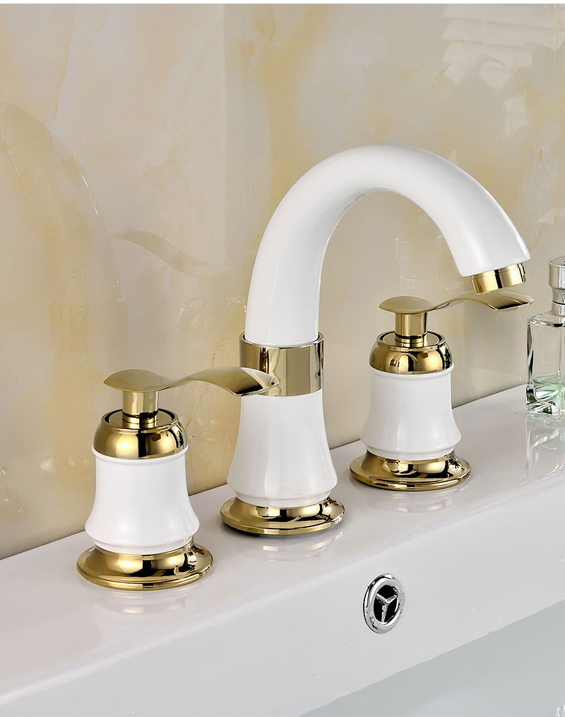 Baiyan Weizhuang 3 홀 분지 수도꼭지 유럽식 황금 3 피스 분할 이중 핸들 이중 제어 온수 및 냉수 수도꼭지