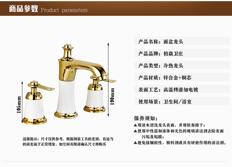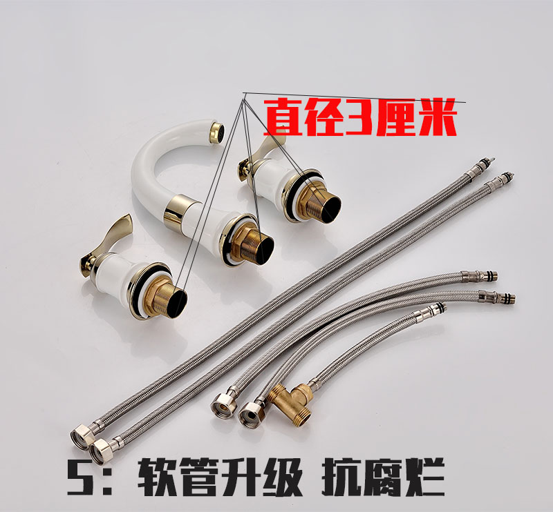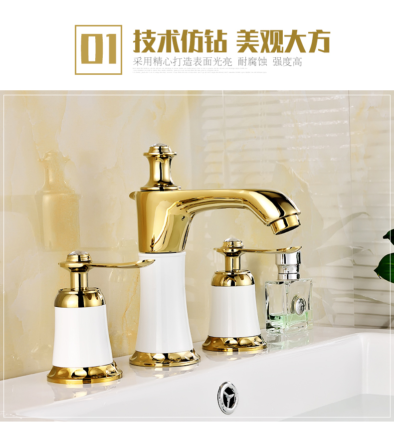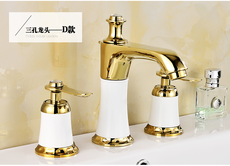 Baiyan Weizhuang 3 홀 분지 수도꼭지 유럽식 황금 3 피스 분할 이중 핸들 이중 제어 온수 및 냉수 수도꼭지스토어 가기