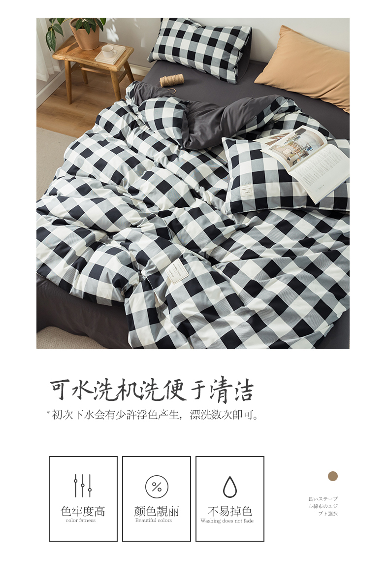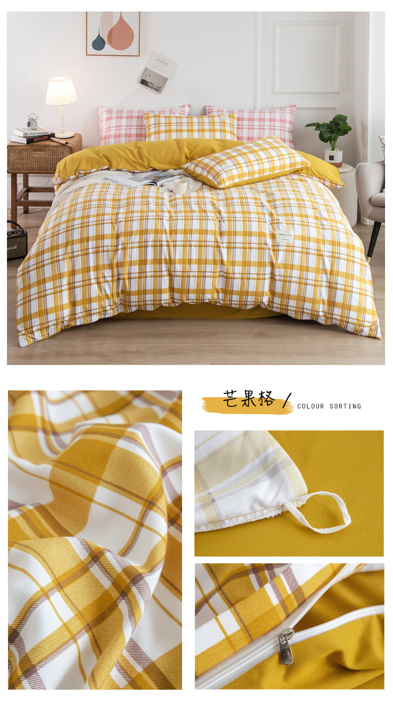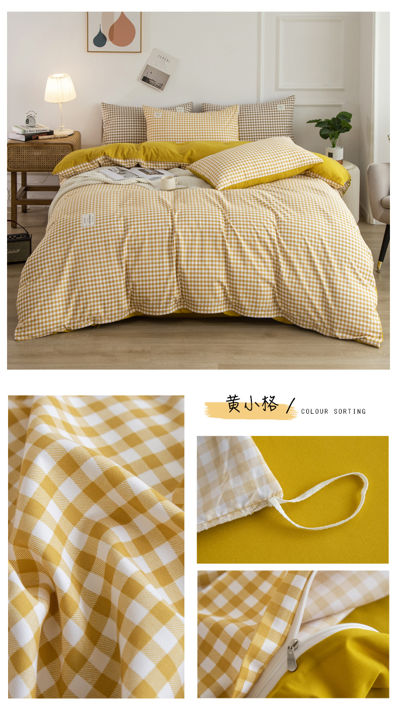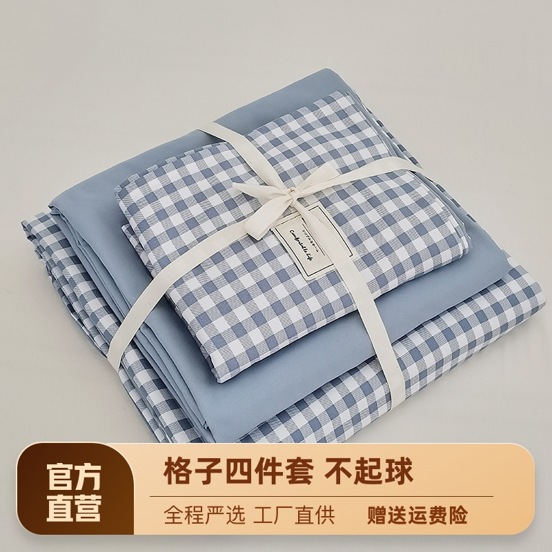 심플 체크 4 종 세트 침구 침대 시트 이불 커버 여름 학생 기숙사 봄과 가을 싱글 침대 3 종 세트스토어 가기