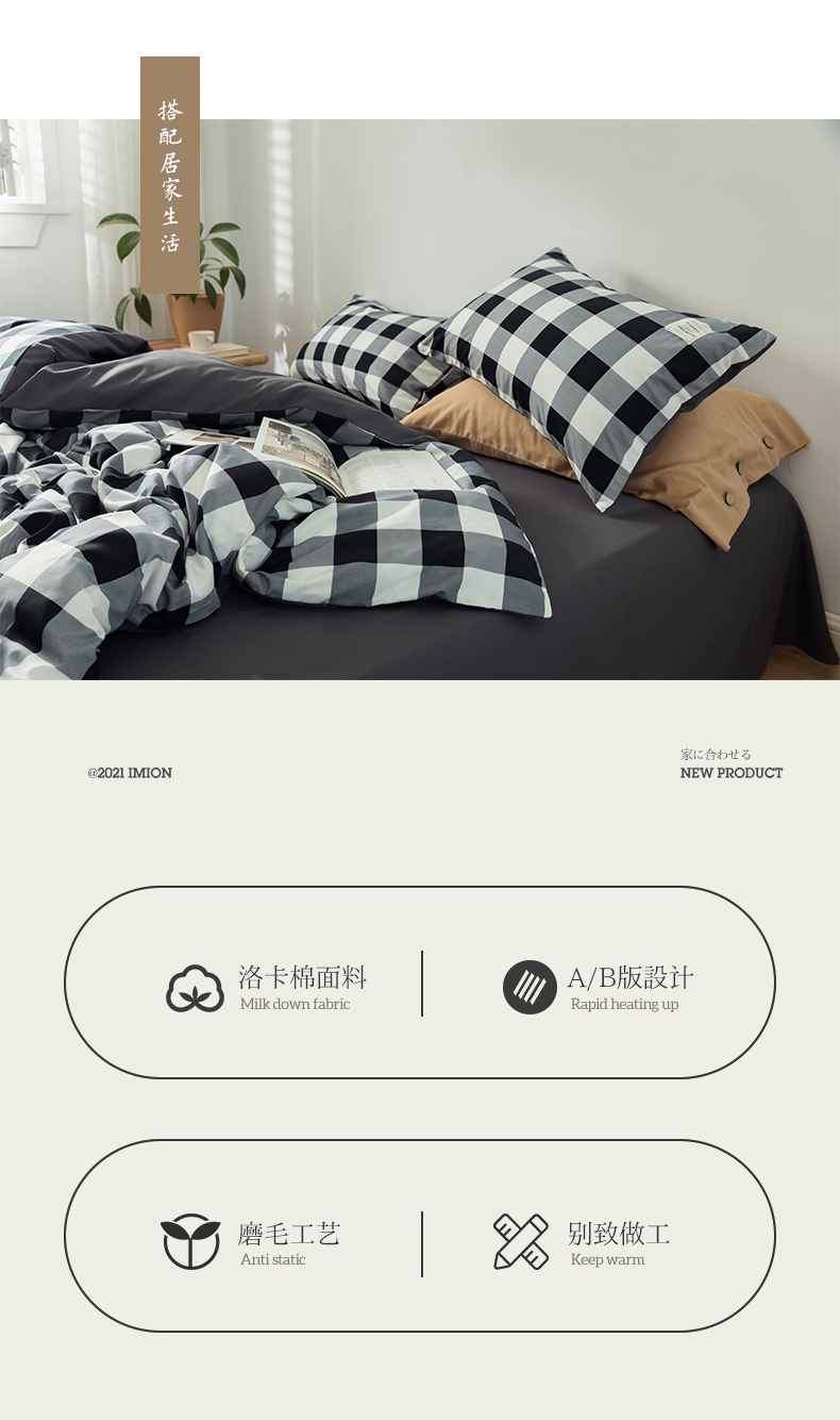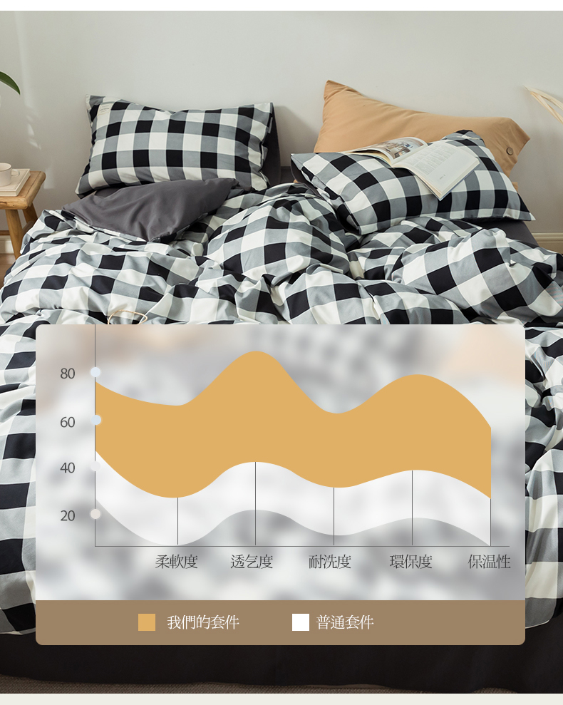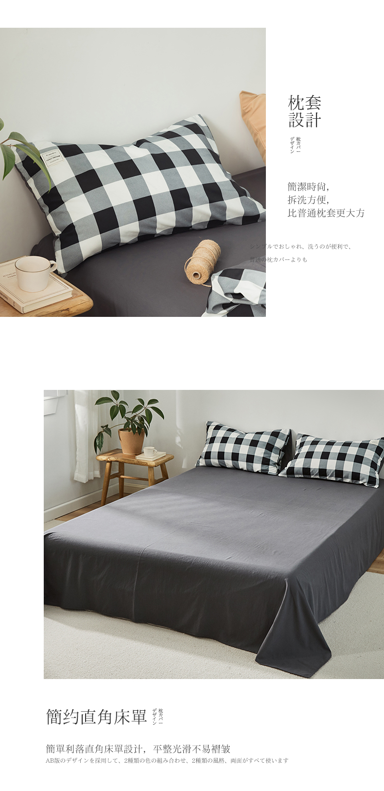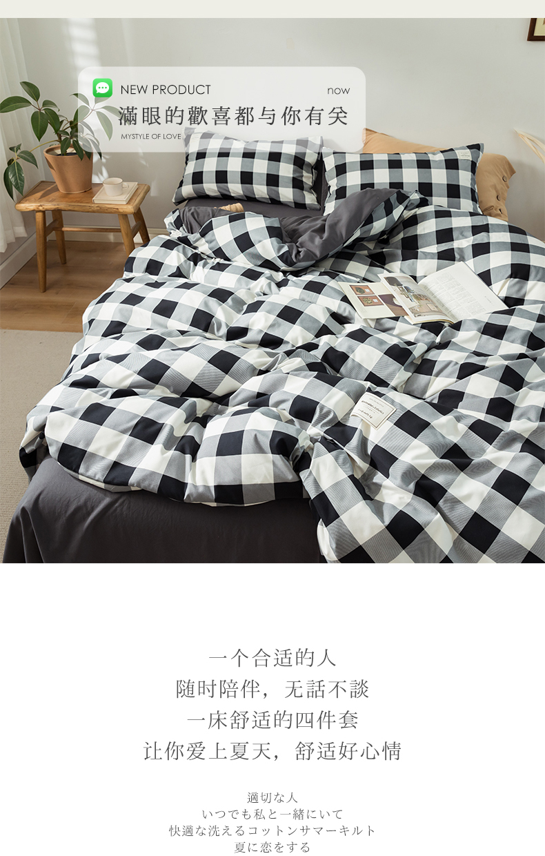 심플 체크 4 종 세트 침구 침대 시트 이불 커버 여름 학생 기숙사 봄과 가을 싱글 침대 3 종 세트스토어 가기