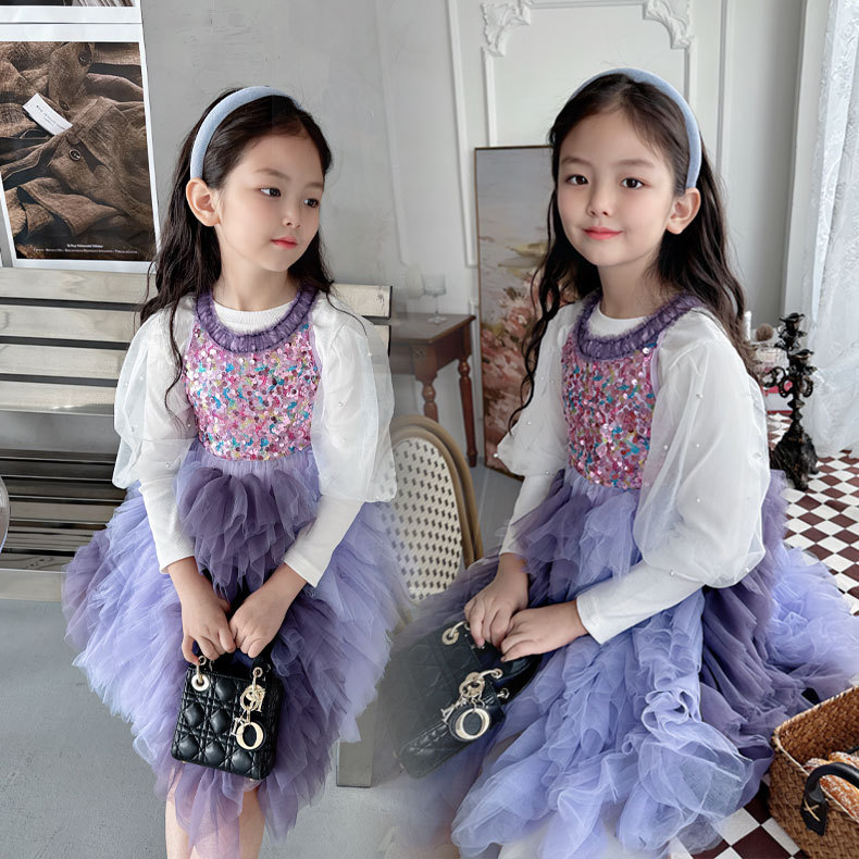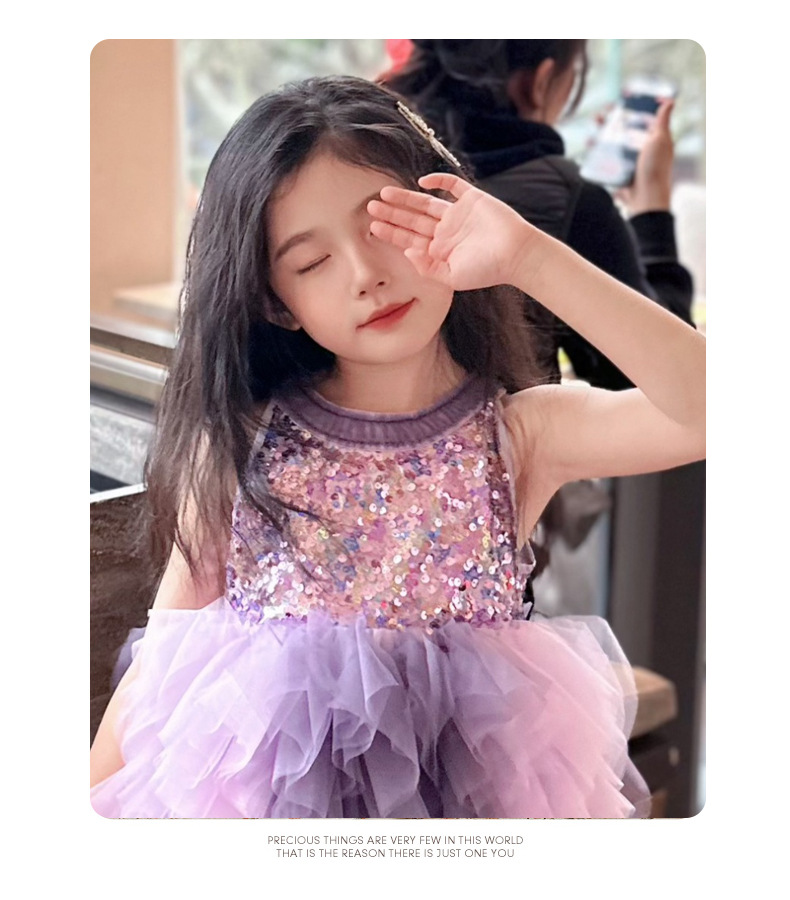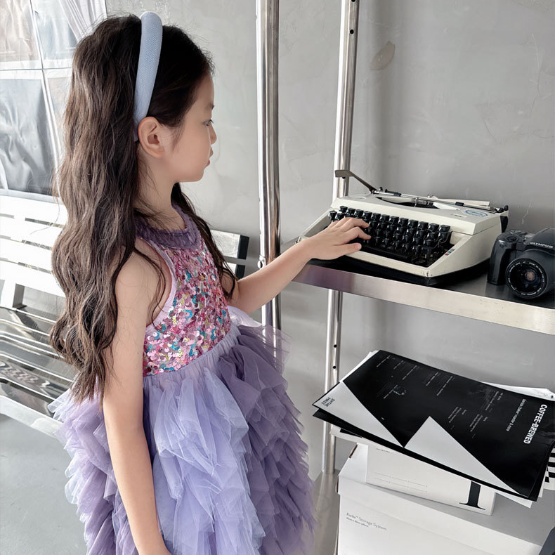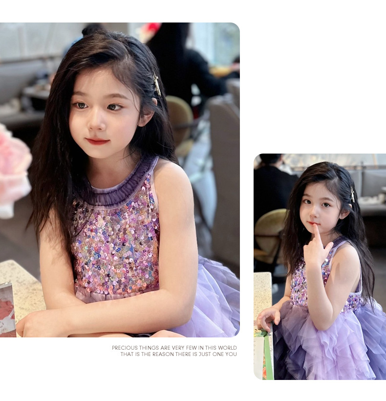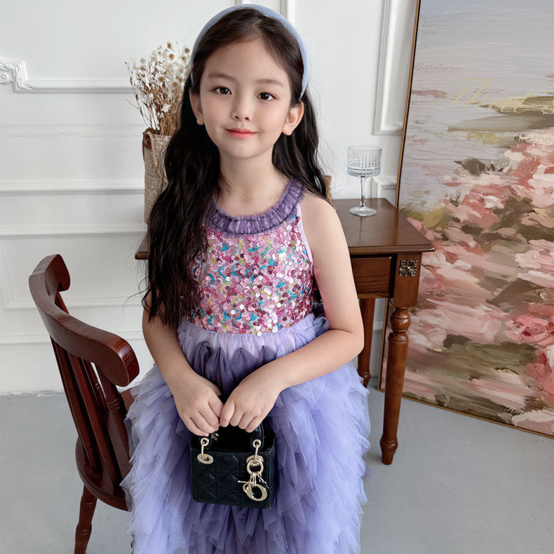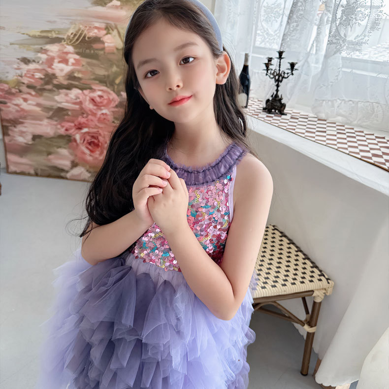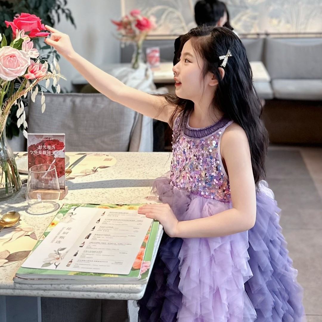 2025 인기 여름 스타일 여아 우아한 보라색 드레스 여자 아기 공주풍 고급 드레스 6월 1일 공연복스토어 가기
