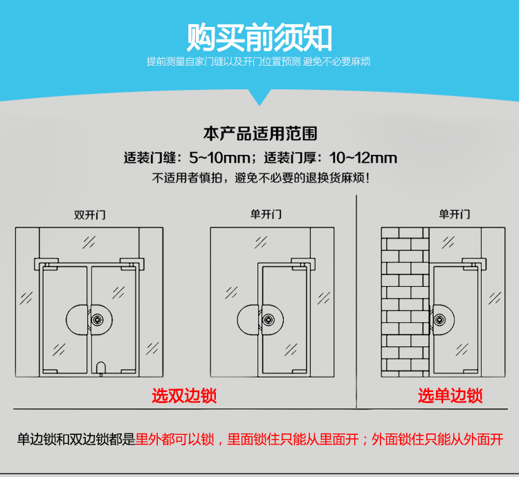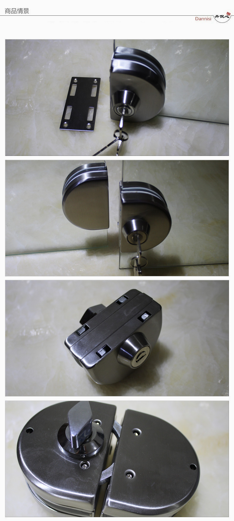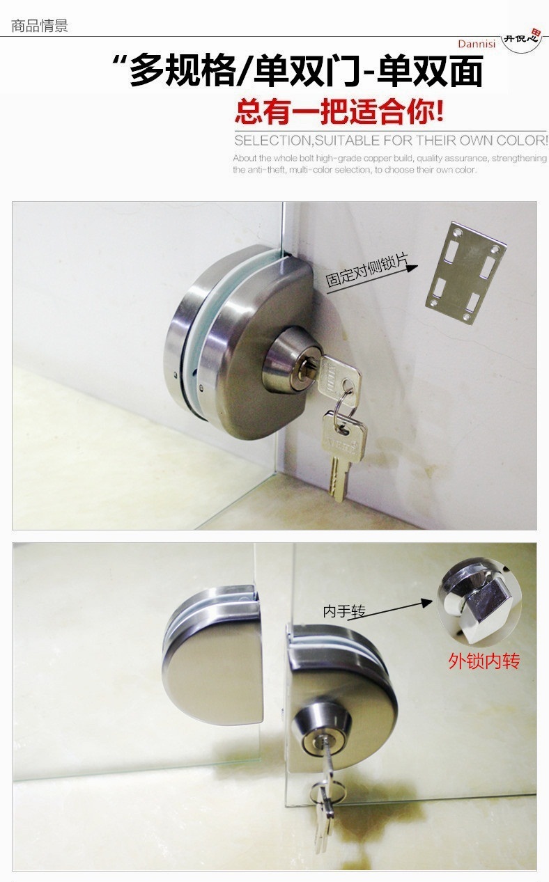 스테인레스 스틸 프레임리스 유리 도어락 더블 도어 U 자형 잠금 유리 싱글 도어 무료 개방 슬라이딩 도어 매장 잠금 장치