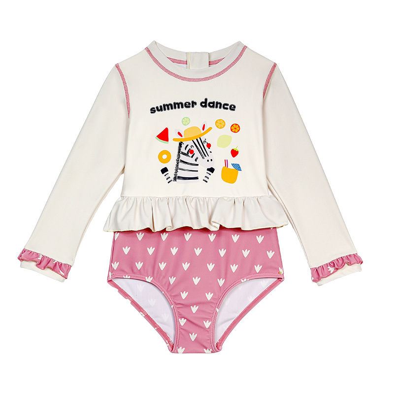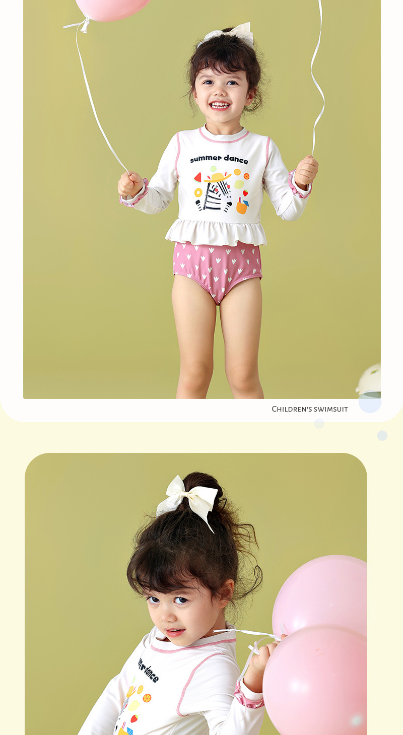 여아용 수영복 긴팔 반바지 일체형 자외선 차단 소녀용 2024 온천 신상품 어린이 수영복 도매스토어 가기